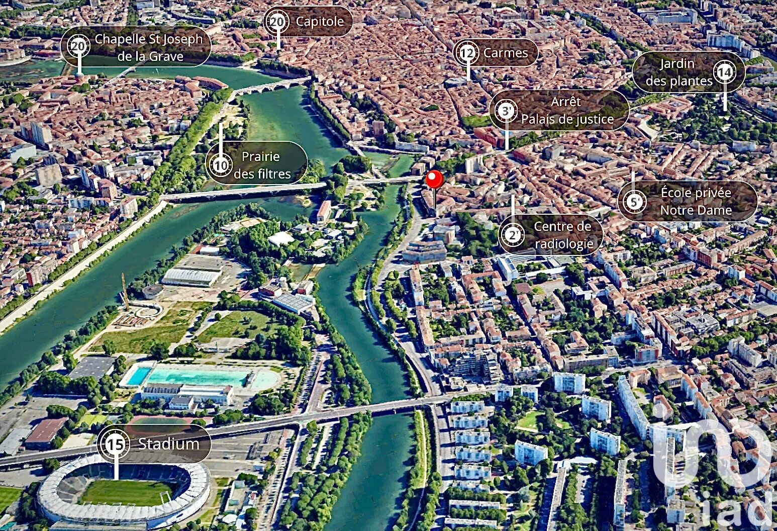 Iad France - Sylvain Etievant vous propose : Vue Garonne & vie citadine : le parfait équilibre ! Au 4ème étage d’une résidence sécurisée avec ascenseur (2005), climatisation et double garage boxé, découvrez ce bel appartement de 140 m², à seulement quelques pas du métro Palais de Justice. Chaque pièce s’ouvre sur un magnifique balcon filant de 50 m², exposé plein ouest, offrant une vue imprenable sur la Garonne et des couchers de soleil exceptionnels. Vous disposez : - d'un vaste séjour de 51 m², idéal pour créer plusieurs ambiances conviviales (salon, espace repas, lecture…). - d'une cuisine indépendante moderne et fonctionnelle, avec son îlot central ingénieusement conçu et de nombreux rangements. - d'un espace nuit composé de deux chambres avec placards, et une suite parentale de 20 m² avec salle d’eau privative et grand dressing. Pour le confort au quotidien : une salle de bain supplémentaire, deux WC séparés, un cellier et deux places de parking boxées. Localisation idéale : commerces, restaurants et transports au pied de la résidence (métro Palais de Justice à 3 min, tramway vers l’aéroport Blagnac en 30 min). À seulement 10 min à pied des Carmes et 20 min du Capitole, vous profitez d’une vie citadine dynamique tout en savourant la quiétude des bords de Garonne. Un bien rare sur le secteur, alliant espace, confort et emplacement de choix. La presente annonce immobiliere vise 3 lots situés dans une copropriété de 114 lots au total et ne faisant l'objet d'aucune procédure en cours citée à l'article L. 721-1 du code de la construction et de l'habitation. Montant moyen mensuel de charges déclaré par le vendeur : 239.67€ par mois (soit 2876 € annuel). Honoraires d'agence à la charge du vendeur. Information d'affichage énergétique sur ce bien : classe ENERGIE B indice 107 et classe CLIMAT A indice 3. Les informations sur les risques auxquels ce bien est exposé, y compris l'obligation légale de débroussaillement, sont disponibles sur le site Géorisques : http://www.georisques.gouv.fr. La présente annonce immobilière a été rédigée sous la responsabilité éditoriale de M Sylvain Etievant mandataire indépendant en immobilier (sans détention de fonds), agent commercial de la SAS I@D France immatriculé au RSAC de nanterre sous le numéro 538324948, titulaire de la carte de démarchage immobilier pour le compte de la société I@D France SAS.
