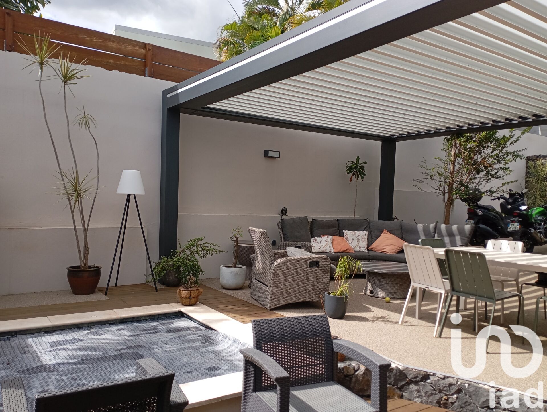 Iad France - Huguette Leperlier vous propose : La Plaine Saint-Paul, magnifique appartement F4 / 5 d'environ 107 m² ( loi Carrez) et une superficie totale de 196 m², avec une très belle vue, un T3 + T, composé au RDC de 2 chambres, d'une salle d'eau, d'un WC, d'un cellier / buanderie, d'un séjour / cuisine (entièrement équipée) donnant sur une très grande terrasse couverte de 30 m² avec une vue entièrement dégagée. À l'étage nous avons une mezzanine d'environ 22 m² (en carrez), une chambre d'environ 10 m² ( en carrez) et d'une surface totale d'environ 28 m², divisible, donnant la possibilité de faire deux chambres ou une très grande suite (avec dressing, salle d'eau et un WC. À l'avant nous avons un Rez de jardin, 2 places de parking, une terrasse couverte avec des lames bioclimatiques orientables, un espace salon et un jacuzzi. Comme vous pouvez le voir cet appartement est moderne et très bien entretenue. Il a été construit en 2013, possède un chauffe-eau solaire et est reliée au tout à l'égout. Située à - de 10mn du centre ville, elle est également a proximité de commerces et de tout le confort nécessaire. Il n'y a pas de charge de copropriété ( un ensemble de 2 appartements). Honoraires d'agence à la charge du vendeur. Bien non soumis au DPE. Les informations sur les risques auxquels ce bien est exposé, y compris l'obligation légale de débroussaillement, sont disponibles sur le site Géorisques : http://www.georisques.gouv.fr. La présente annonce immobilière a été rédigée sous la responsabilité éditoriale de Mme Huguette Leperlier mandataire indépendant en immobilier (sans détention de fonds), agent commercial de la SAS I@D France immatriculé au RSAC de ST PIERRE DE LA REUNION sous le numéro 414220012, titulaire de la carte de démarchage immobilier pour le compte de la société I@D France SAS.