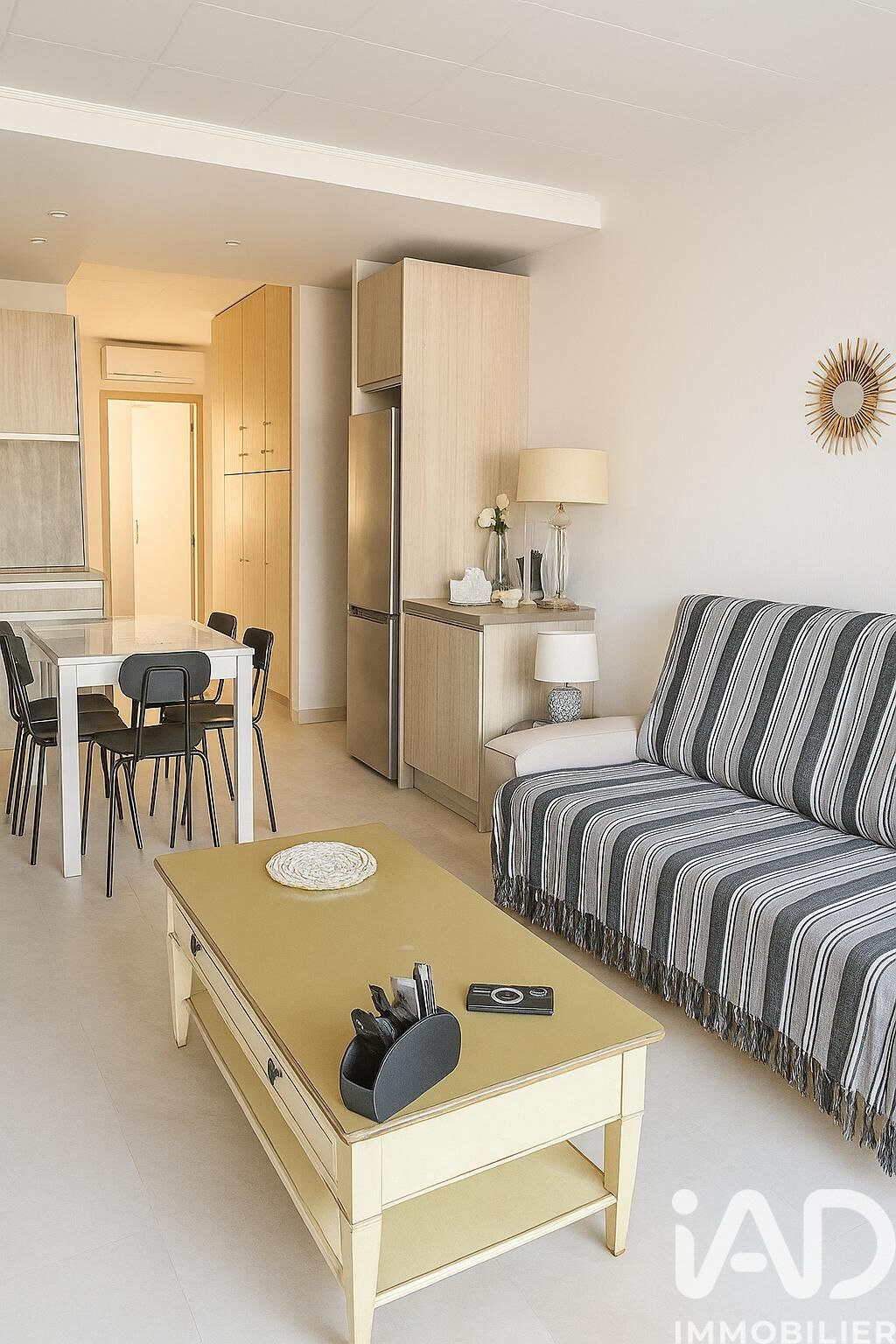 Iad France - Paul RICOU vous propose : Appartement de 3 Pièces avec Balcon et Terrasse au Grau-du-Roi Situé à Port Camargue, et à proximité immédiate du port de plaisance, des commerces et des plages, cet appartement de 49,5 m². L'appartement se trouve au 1er étage d'un immeuble de 2 niveaux construit en 1970, bien entretenu et en bon état global. L'espace de vie se compose d'une entrée chambre lumineuse avec balcon de 3 m² pour s'y détendre, d'un bureau permettant un couchage pour deux personnes, d'une salle à manger spacieuse, d'une cuisine ouverte équipée en 2024, d'une salle d'eau, d'un WC séparé, et d'une agréable terrasse, donnant sur le port de plaisance. La résidence offre un confort optimal avec la fibre optique, la ventilation mécanique, un digicode et un accès sécurisé. L'appartement bénéficie d'un système de chauffage individuel avec climatisation réversible et convecteurs. L'exposition sud et est assure une luminosité naturelle tout au long de la journée. Les points forts de ce bien résident dans sa situation géographique privilégiée, proche de toutes les commodités et des loisirs, ainsi que dans son état impeccable qui ne nécessite pas de travaux de réfection. NOTA BENE : Un garage de 20 m² environ, situé au sous-sol de la résidence peut-être vendu en option, en marge de l'appartement. La presente annonce immobiliere vise 1 lot situé dans une copropriété de 258 lots au total et ne faisant l'objet d'aucune procédure en cours citée à l'article L. 721-1 du code de la construction et de l'habitation. Montant moyen mensuel de charges déclaré par le vendeur : 93.33€ par mois (soit 1120 € annuel). Honoraires d'agence à la charge du vendeur. Information d'affichage énergétique sur ce bien : classe ENERGIE C indice 175 et classe CLIMAT A indice 5. Les informations sur les risques auxquels ce bien est exposé, y compris l'obligation légale de débroussaillement, sont disponibles sur le site Géorisques : http://www.georisques.gouv.fr. La présente annonce immobilière a été rédigée sous la responsabilité éditoriale de M Paul RICOU mandataire indépendant en immobilier (sans détention de fonds), agent commercial de la SAS I@D France immatriculé au RSAC de nimes sous le numéro 752063834, titulaire de la carte de démarchage immobilier pour le compte de la société I@D France SAS.
