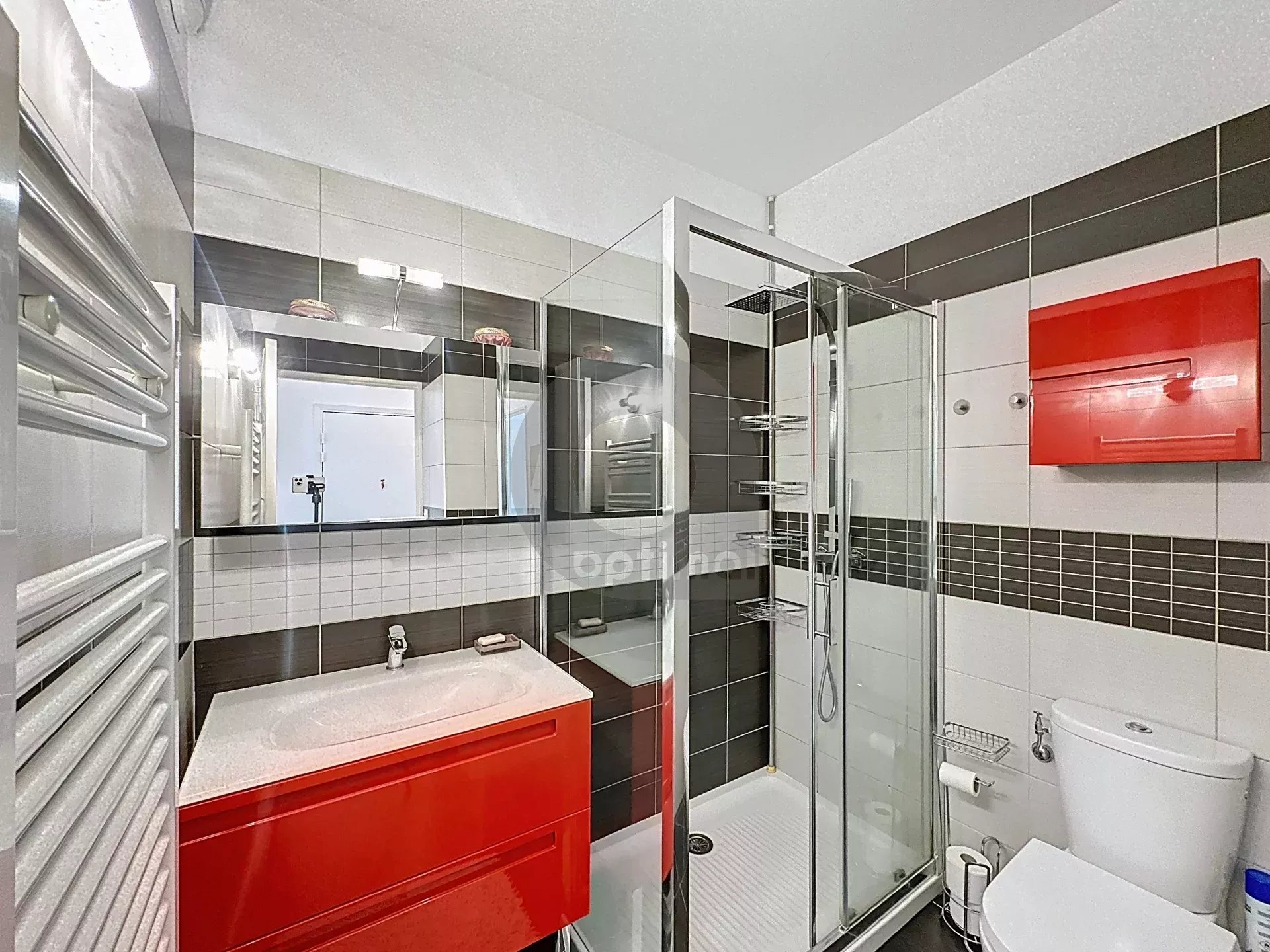 We are pleased to present this magnificent 4-room apartment with 86.26m² of living space, comprising: entrance hall with cupboard and shower room with toilet, large living room with semi-open, fully-furnished and equipped kitchen, 2 bedrooms with cupboard, one bedroom and a second shower room with toilet, all in excellent condition.