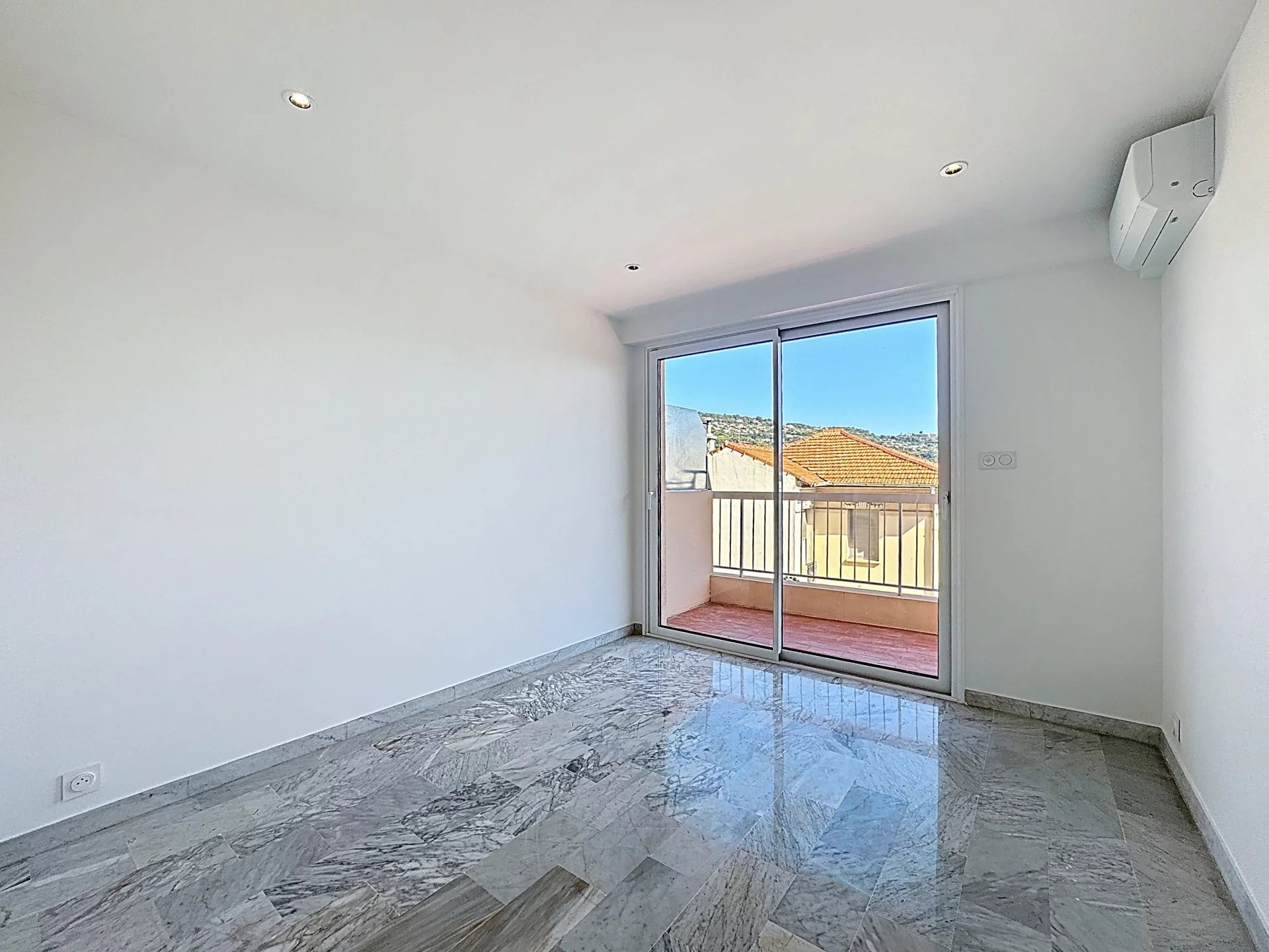 SAINT NICOLAS - Less than 10 minutes' walk from La Banane, in the immediate vicinity of all amenities, in a well-maintained building with elevator and concierge, discover this renovated 3-room apartment, featuring a corner terrace facing south and east, accessible from all rooms.