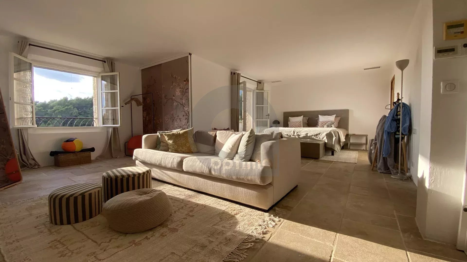 Discover this magnificent stone bastide, nestled between sea and hills, on the residential heights of La Colle-sur-Loup. Set on a 1.5-hectare estate with south-western exposure, this charming bastide overlooks pine forests and the sea, out of sight and in a fully-secured green setting. It features a heated infinity pool, top-of-the-range fittings, underfloor heating, double-flow ventilation and a 25 m² laundry room with a vast basement. It comprises eight spacious rooms, a large entrance hall opening onto the living room with fireplace and dining room, and a charming kitchen with terrace, including 5 en suite bedrooms with bathrooms and dressing rooms. An independent apartment on the garden level includes kitchen, living room and en suite bedroom. 3 garages and numerous parking spaces are available. Ideally located 30 minutes from Monaco, 10 minutes from the airport, and only a few kilometers from Saint-Paul-de-Vence. Don't miss the opportunity to acquire this unique property combining modern comfort and Provencal charm.