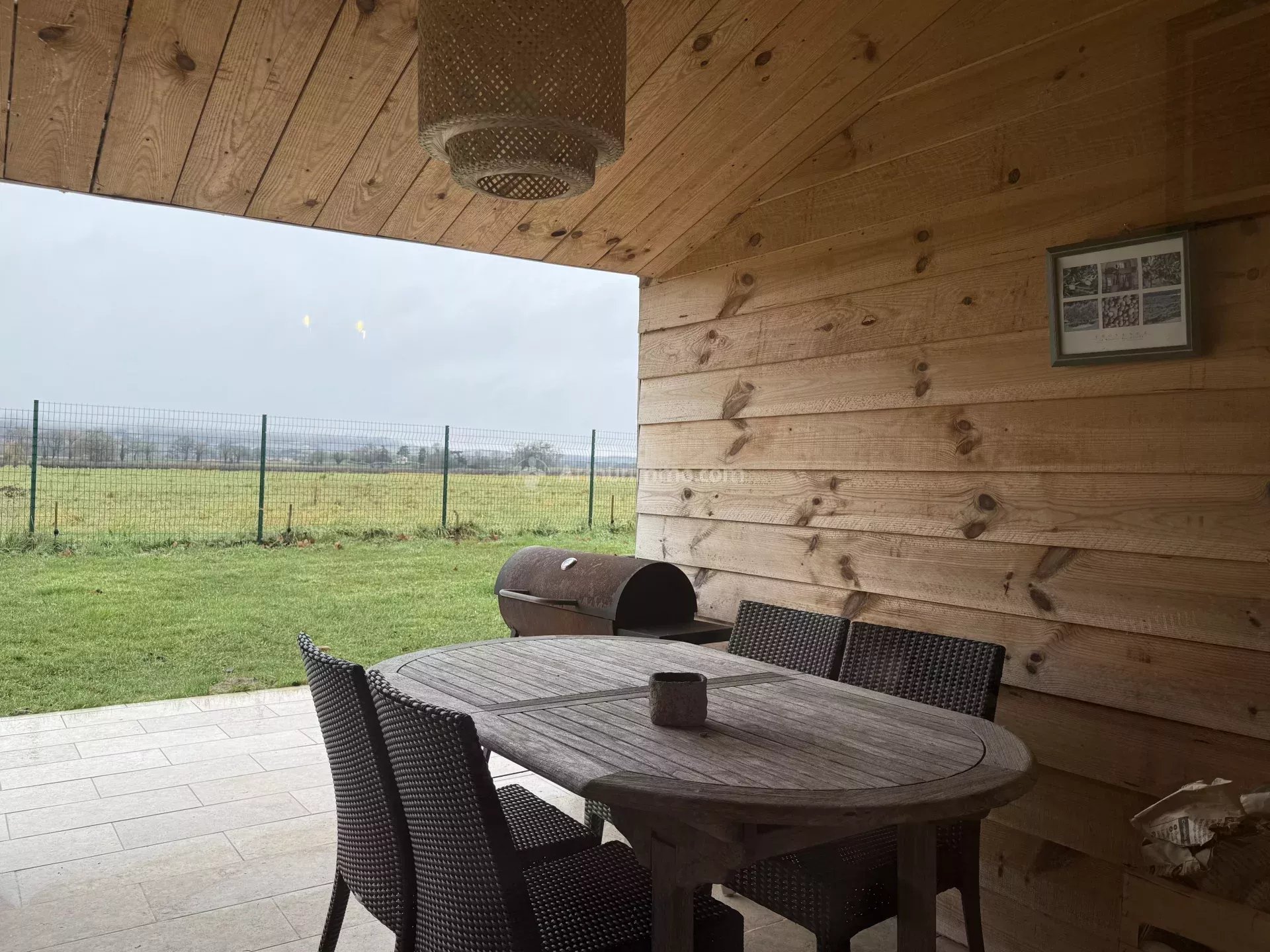 Une terrasse couverte permet de profiter de l’extérieur, ainsi qu’un garage.