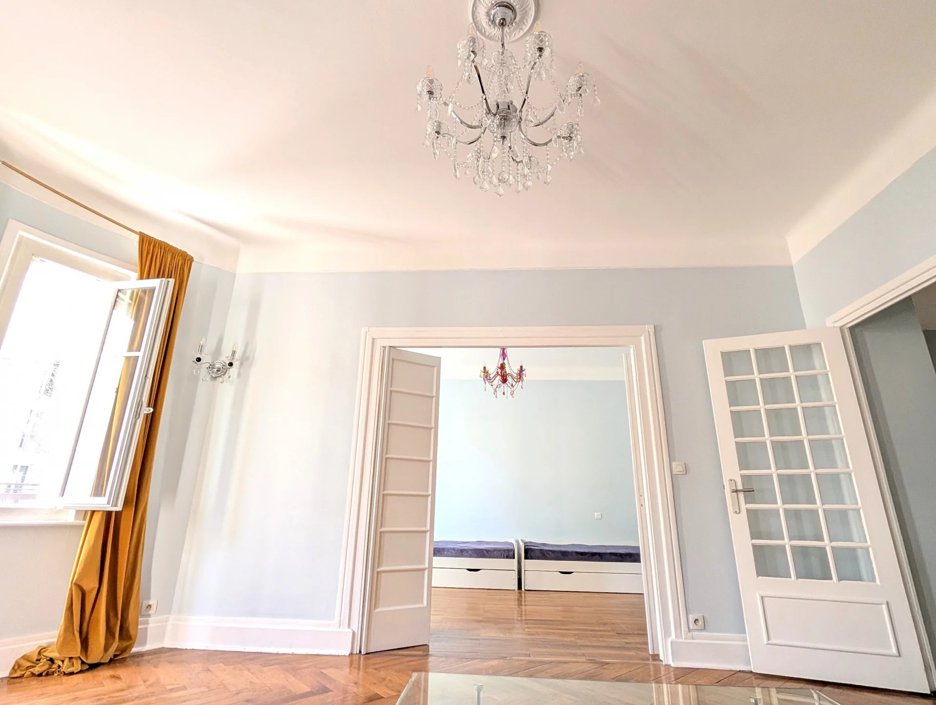 Located on a high floor with elevator, the apartment benefits from a south and west exposure, guaranteeing optimal light.