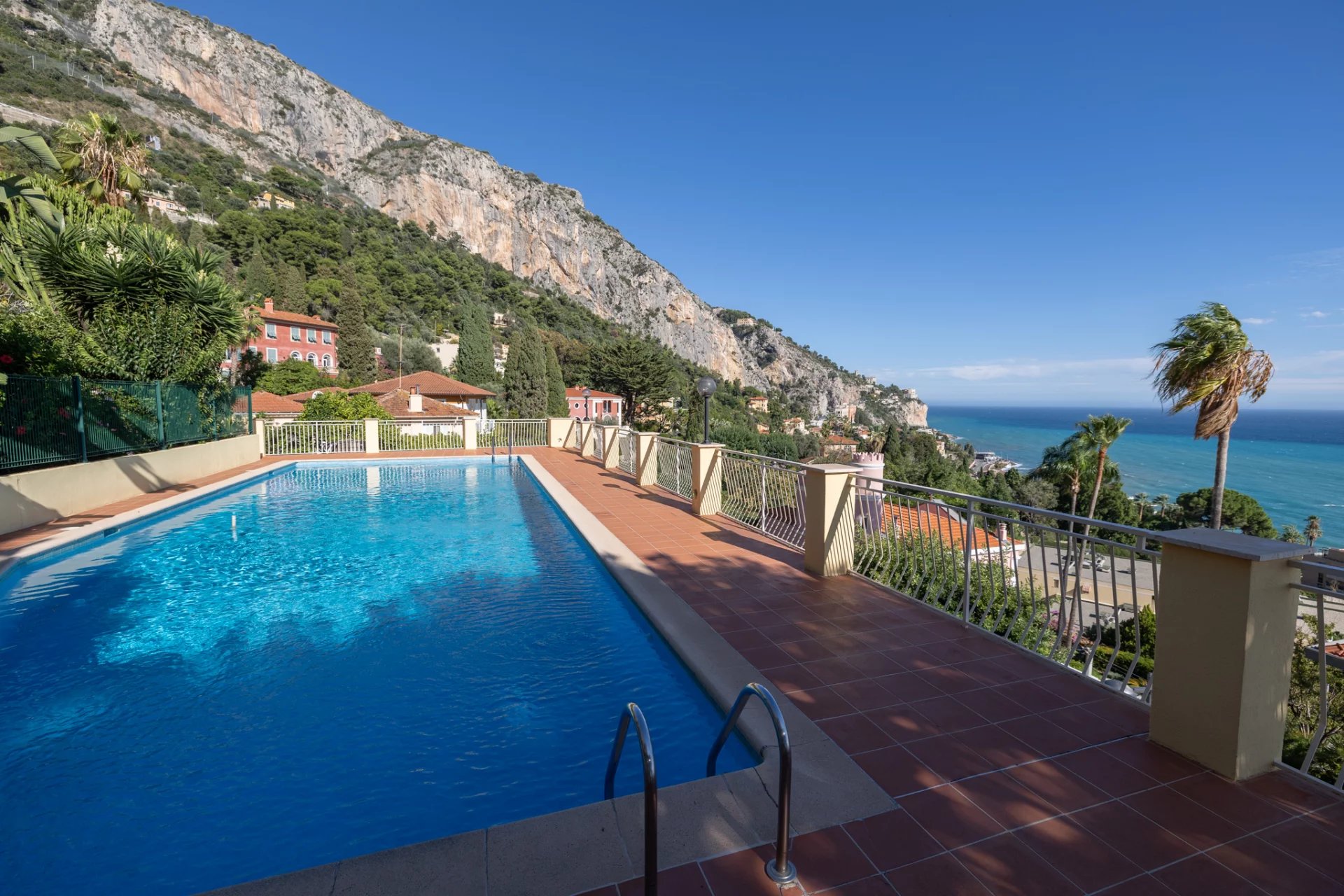 SOLE AGENT - In the heart of a luxury residence with park, caretaker and swimming pool, we invite you to discover this splendid apartment with terrace. This property measures 58 m² of living space and consists of an entrance hall, a very bright living room facing south opening onto the 20 m² terrace with a splendid view of the hills, the old town of Menton and the Sablettes beach. Large bedroom also with access to the terrace, bathroom with WC plus separate bathroom and toilet. Cellar. Outdoor parking.