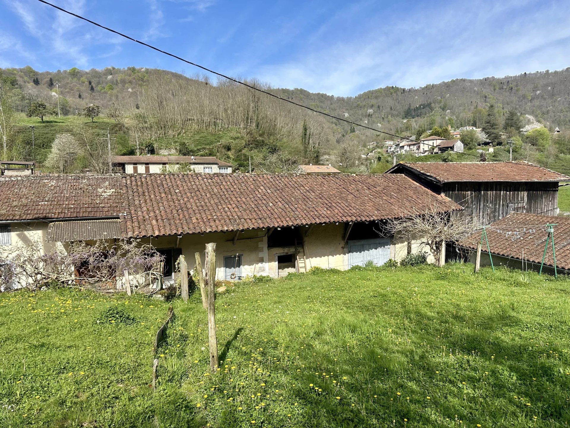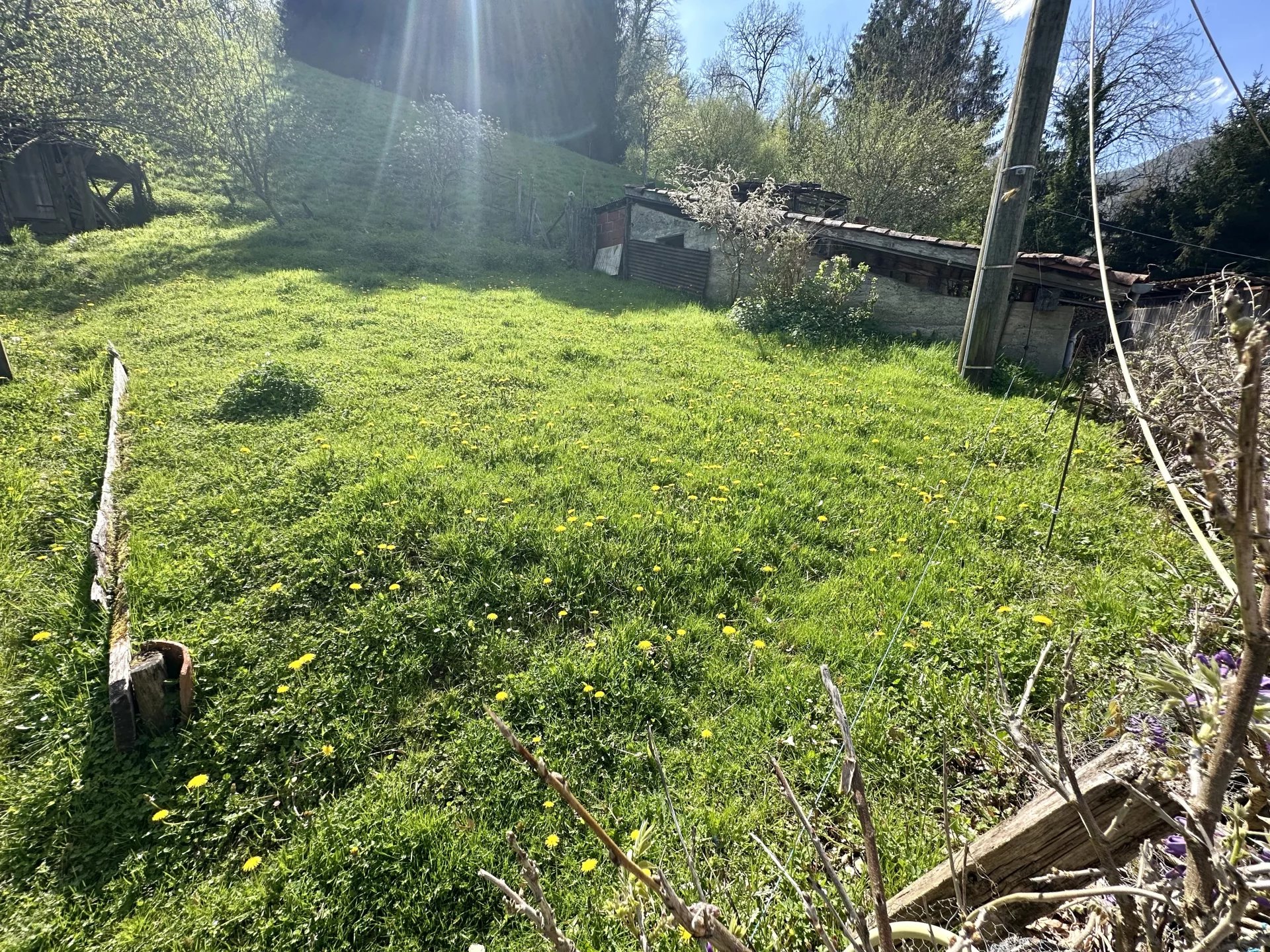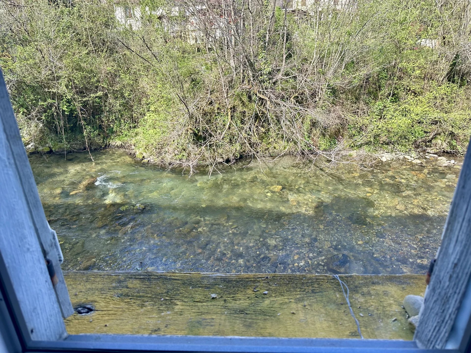 A noter que la maison est alimentée en eau par une source privative (situé a 400 m) avec un débit constant tout au long de l'année (environ 0,5 L a la seconde au 14 /04/2025). Il est cependant possible de la connecter au réseau d’eau de la ville.
