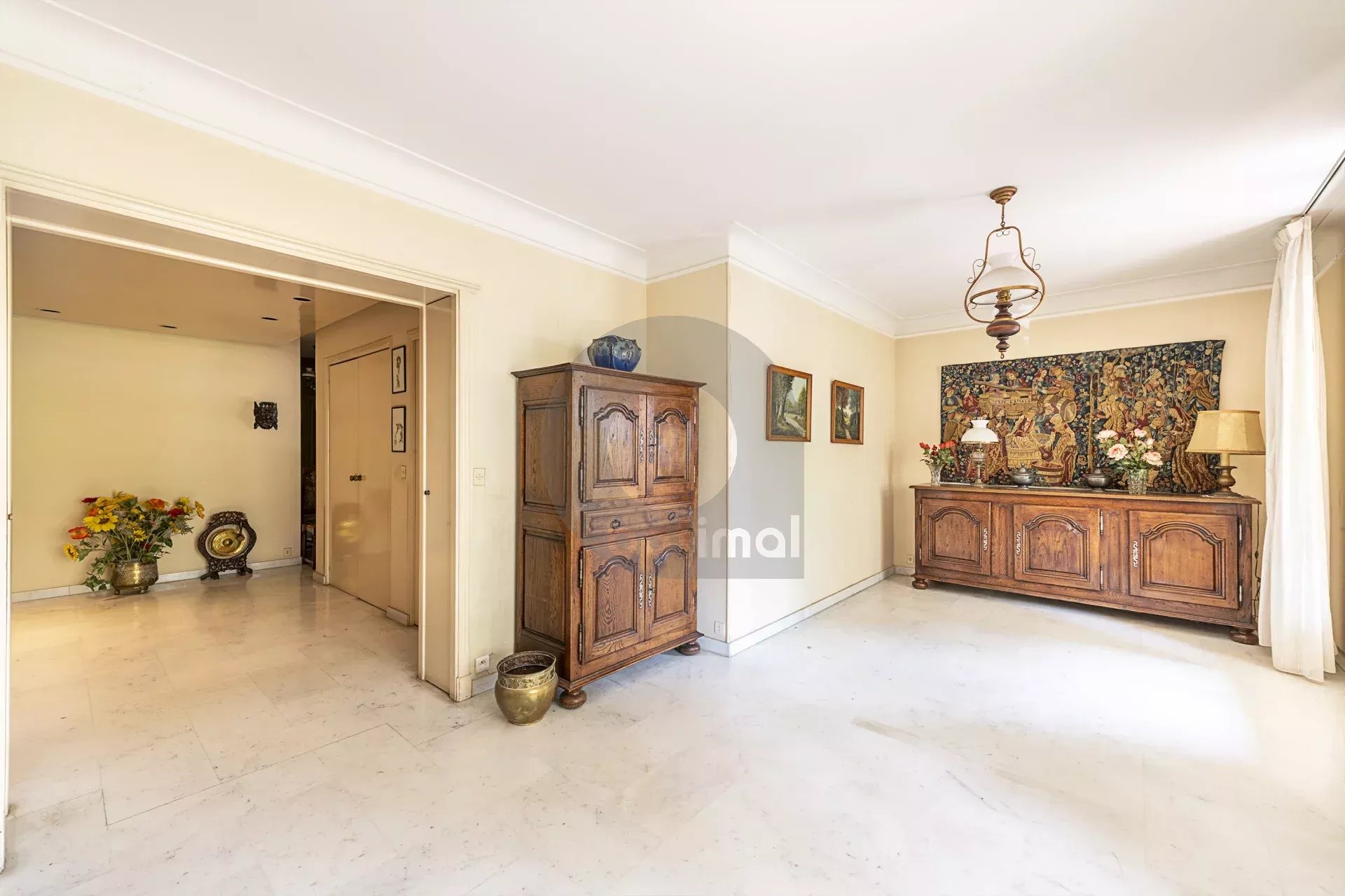 Standing Residence in unmittelbarer Nähe des Stadtzentrums von MENTON und allen Annehmlichkeiten, schöne 4-Zimmer-Wohnung 96,81 m2 + Terrasse 19 m2 + Balkon 10 m2, Wohn- und Esszimmer, Einbauküche, 3 Schlafzimmer, viele Schränke, dreifache Exposition, Keller, Gemeinschaftsparkplatz. Zusätzliche Möglichkeit Garage 21 m2 (7m x 3m) mit Stromzähler 50 000 €.