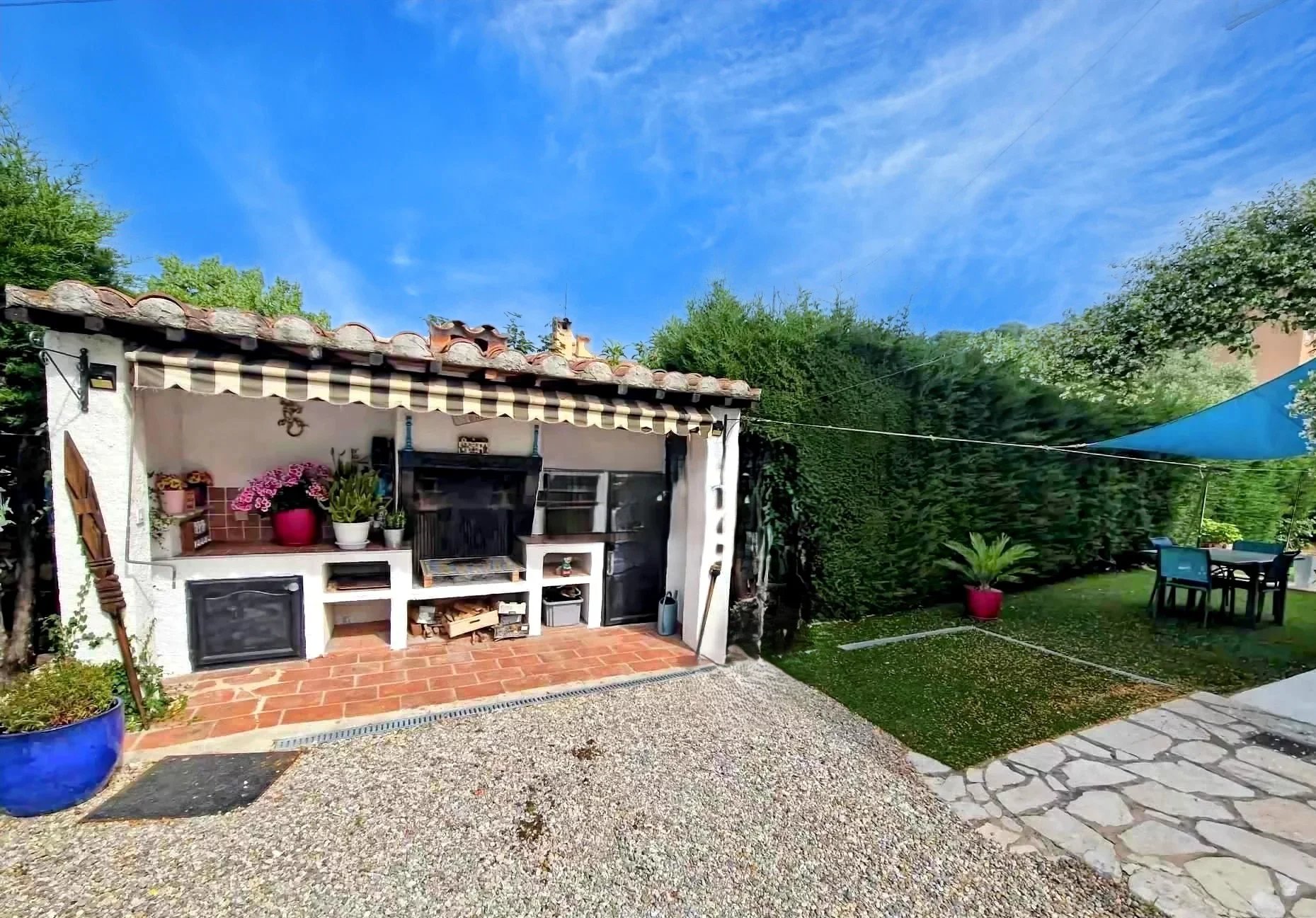 À l'extérieur, profitez d'un barbecue avec une petite cuisine d'été, et d'un appentis pouvant servir de rangement ou d'abri.