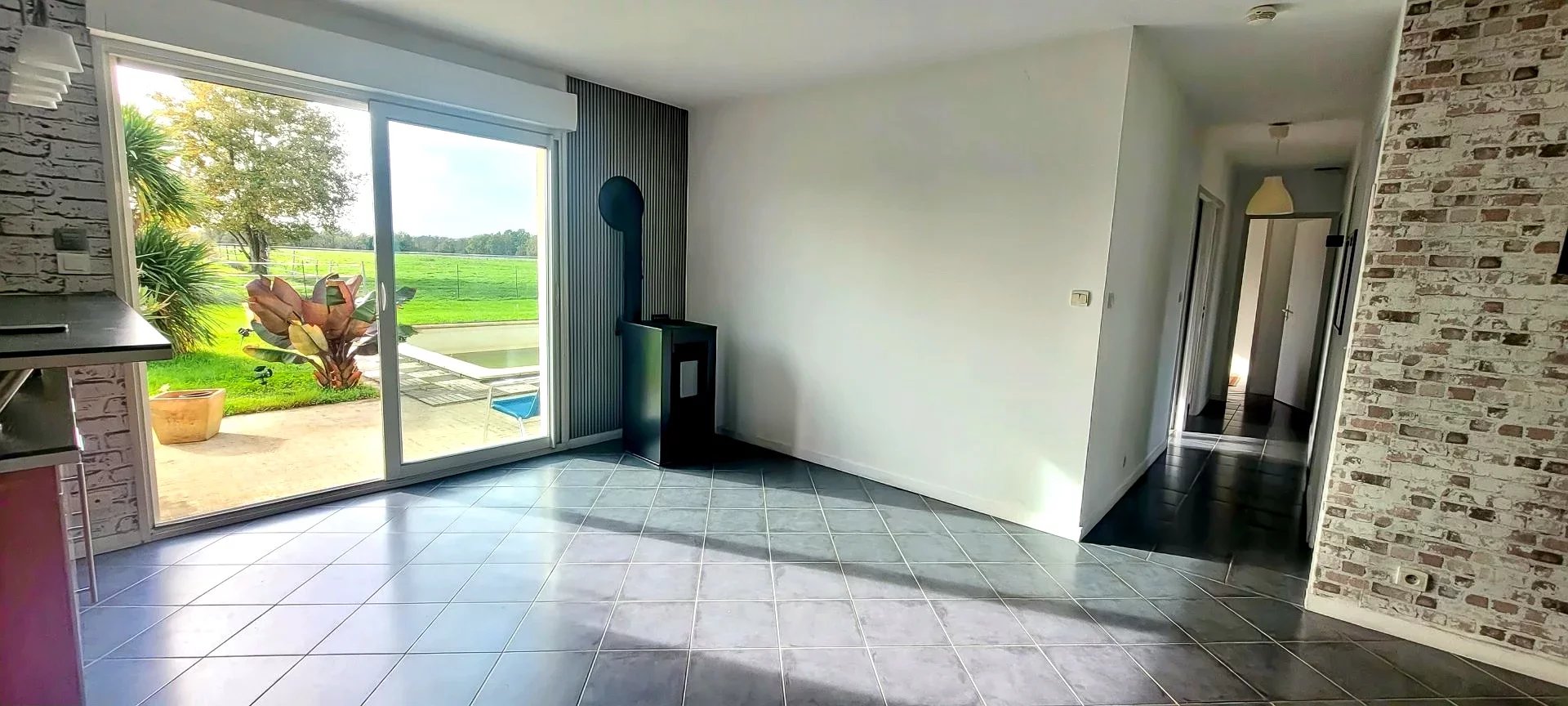 Vous trouverez ici le calme et une vue imprenable sur la campagne, le confort d'une maison récente avec piscine et la proximité immédiate de toutes les commodités !