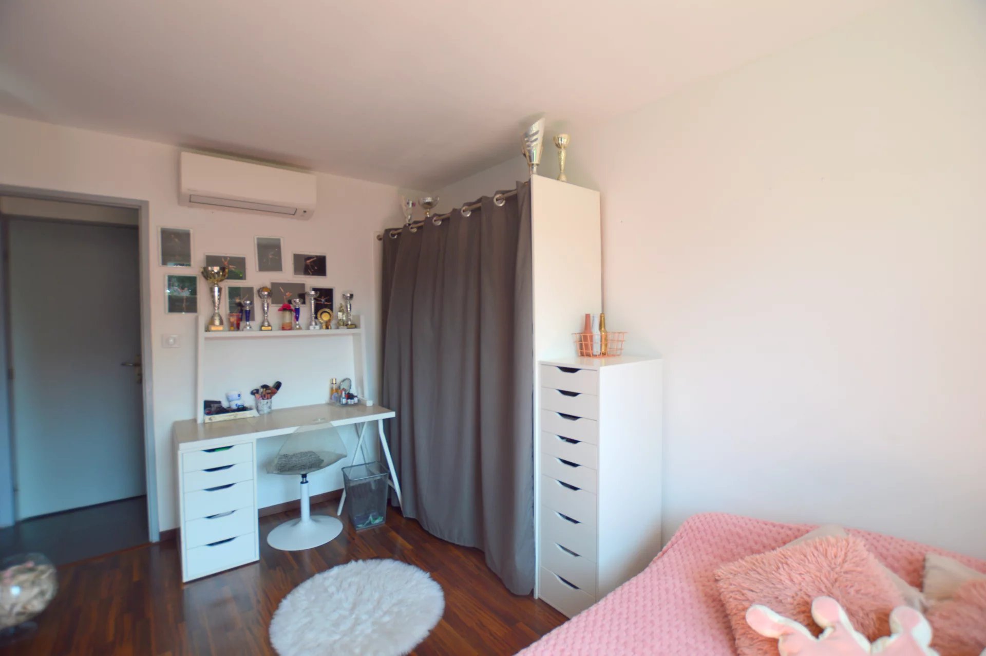 À l’étage, la suite parentale de 30 m² est un véritable cocon : elle offre une salle de bains, une salle d’eau, un WC, un dressing généreux et surtout une terrasse privative avec vue dégagée sur l’environnement résidentiel du Crès.