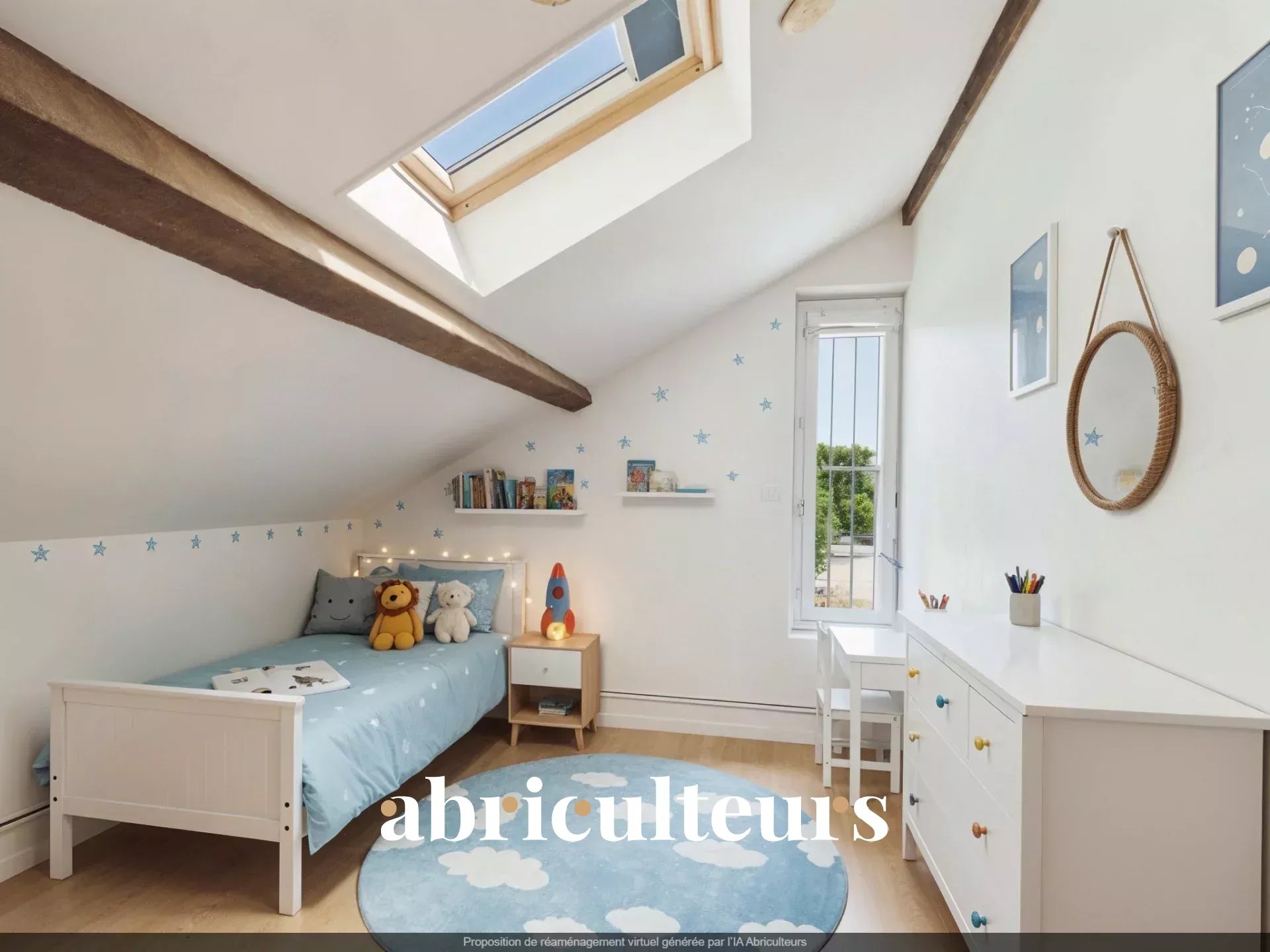 Under the converted attic: a children's playroom and two additional bedrooms, offering beautiful multi-purpose spaces.
