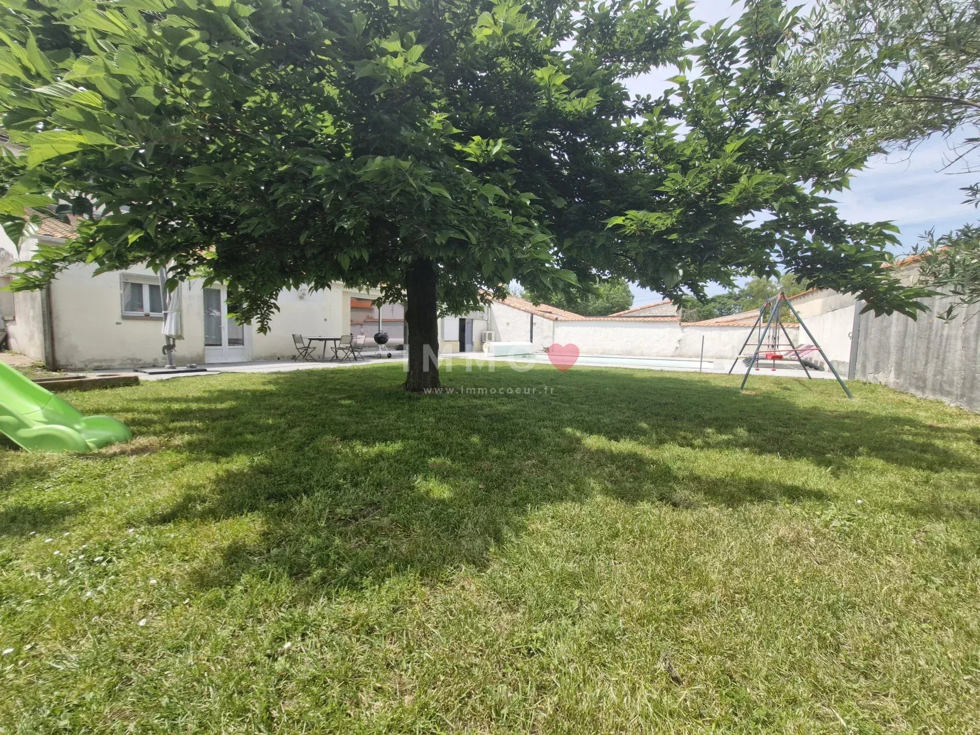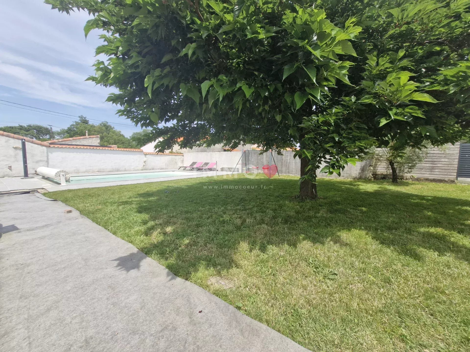 Enclosed, not overlooked plot of 660m² with 34m² garage+galetas, swimming pool with roller shutter and heat pump (liner to be changed).