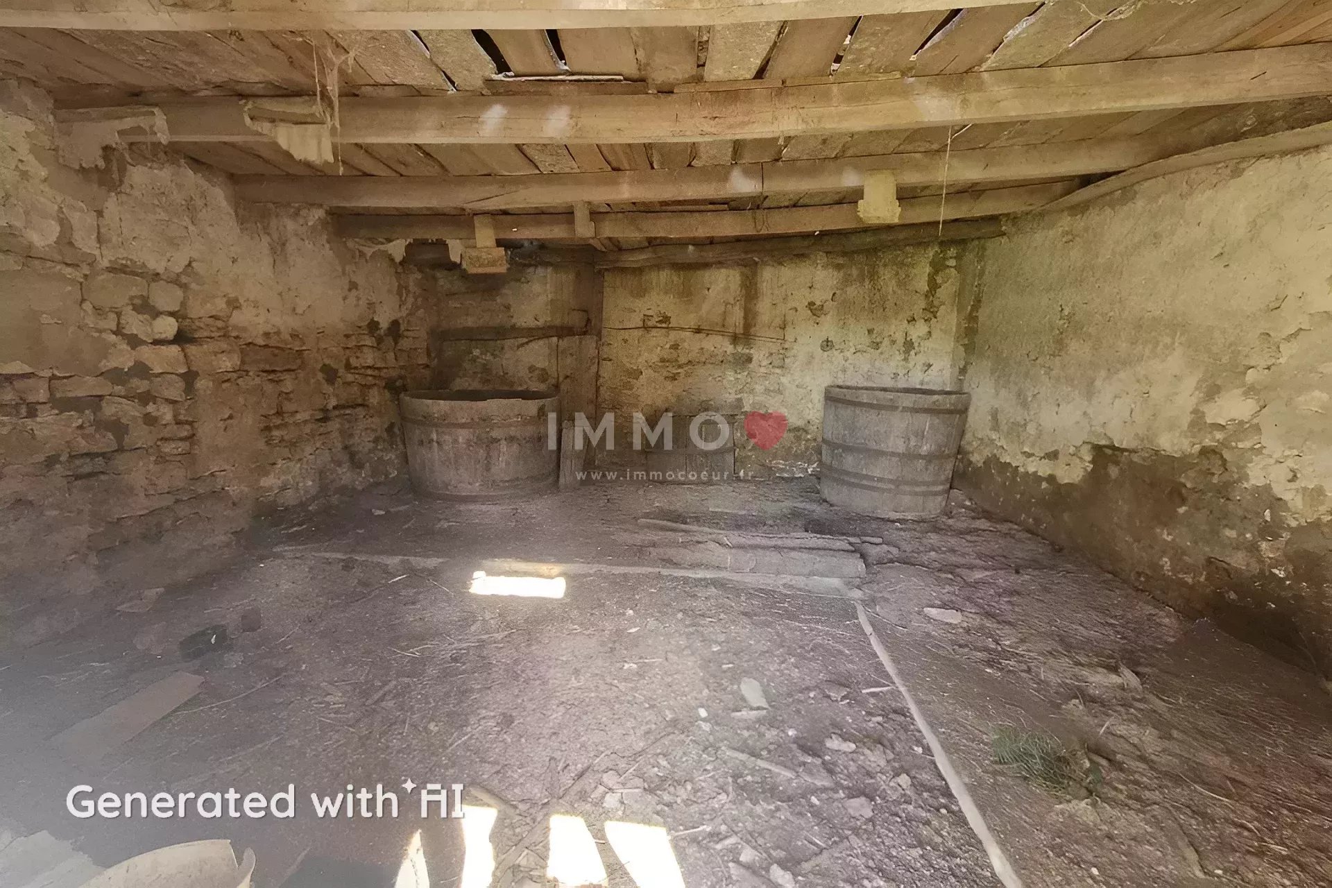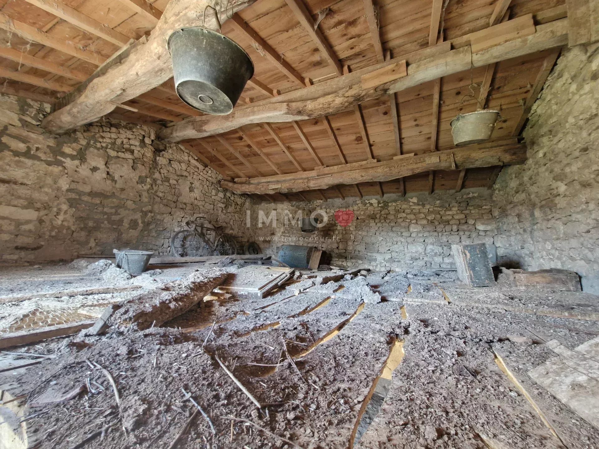 The interior space, though in need of modernization, features a layout that can be transformed to suit your desires. The potential to restore the fireplace and exposed beams makes this home a perfect canvas for crafting a warm and inviting atmosphere. With an ideal location, enjoy the tranquility of rural France while being close to local amenities.
