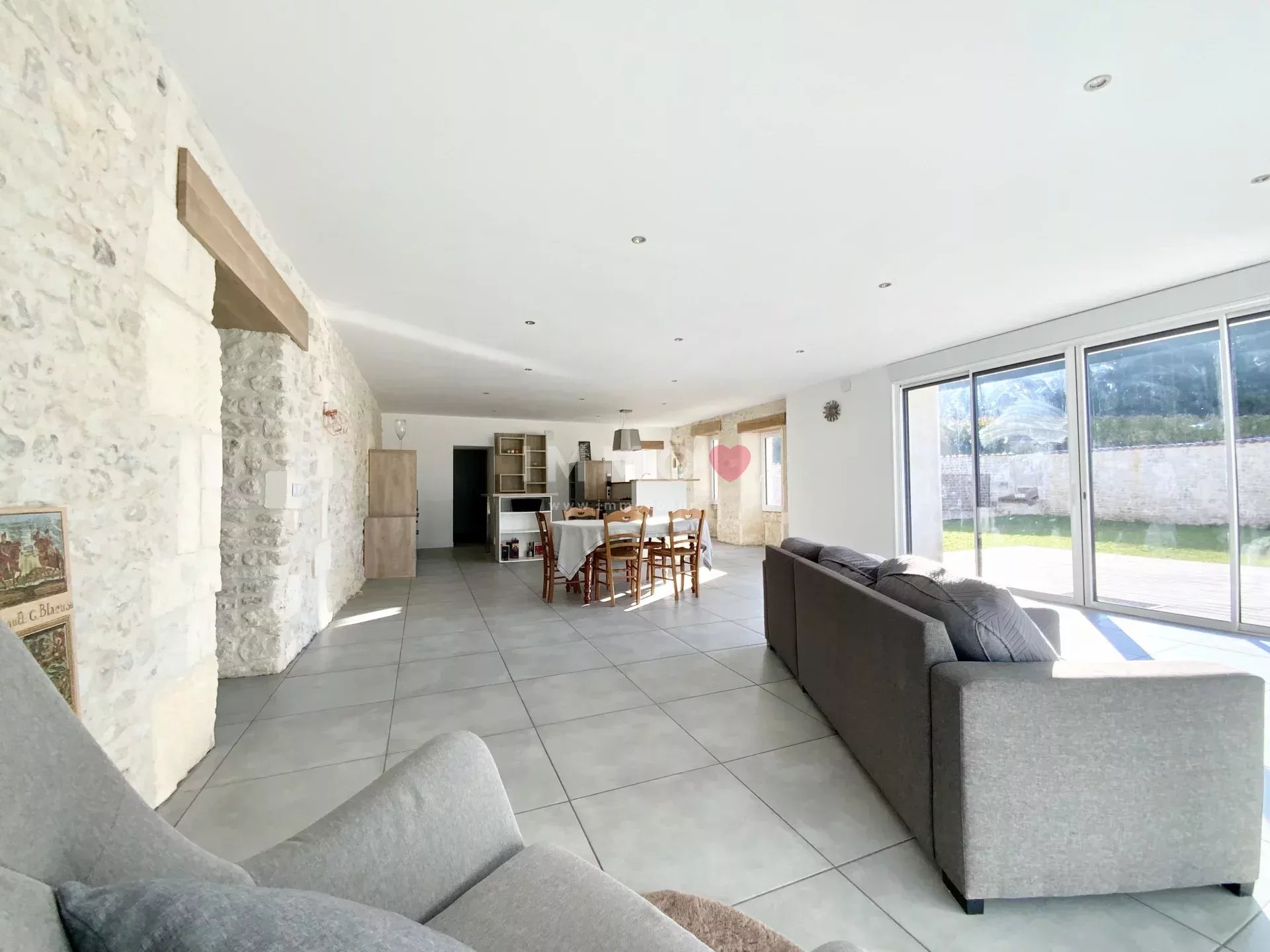 Located just 5 minutes from Segonzac, the capital of Cognac, it combines the timeless charm of stone with the modern comforts of a complete renovation.