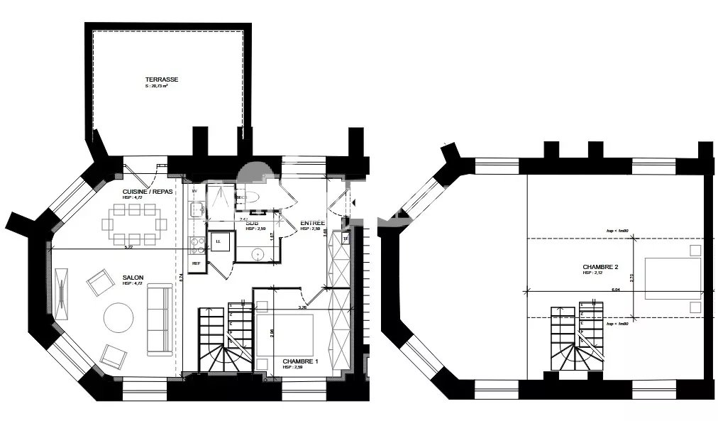 Idéal INVESTISSEUR ou 1er achat !! CAMPAGN'IMMO vous propose un plateau de 78.78 m² habitables (108.8 m² de surface de plancher), en duplex, à aménager, au deuxième étage d'une ancienne chapelle au centre-ville à proximité des écoles et des commerces.