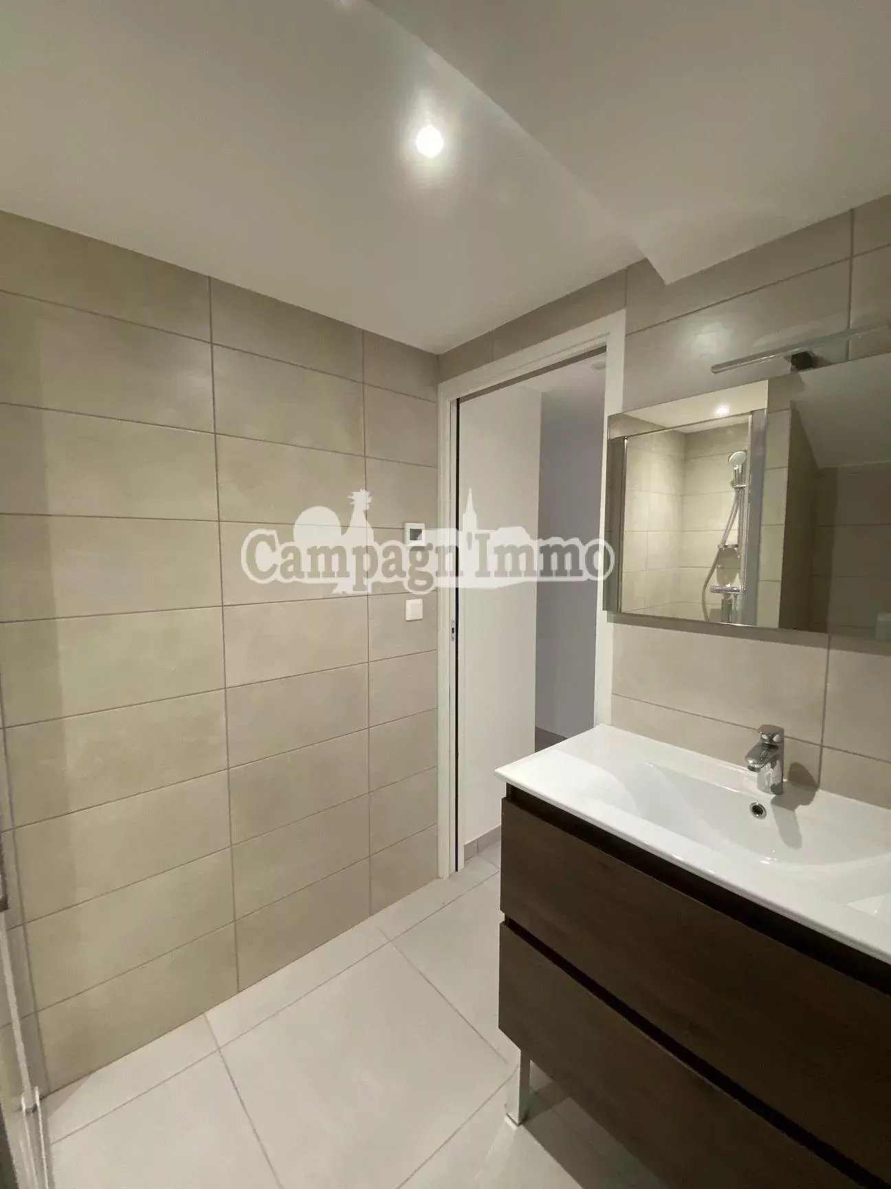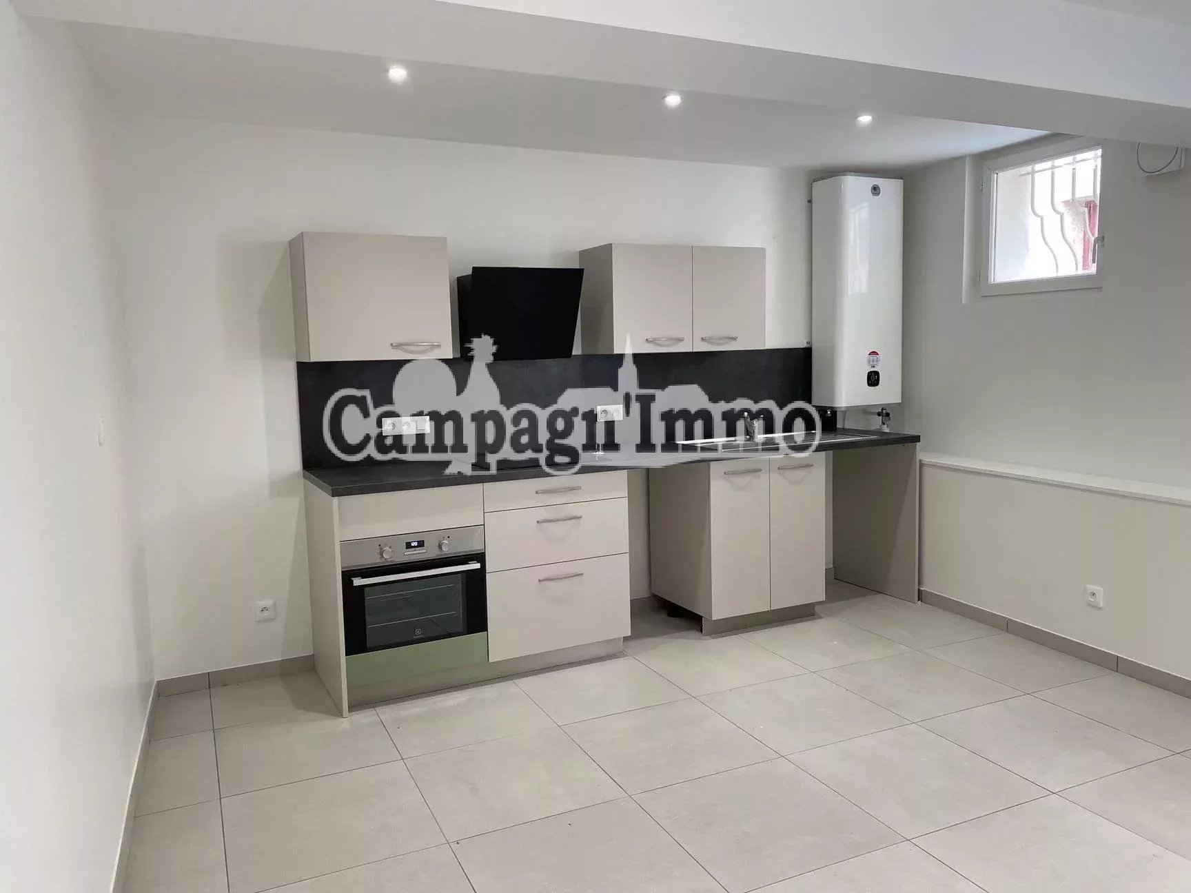 L'appartement en rez de chaussée, se compose d'une pièce de vie avec cuisine équipée, ouverte sur le séjour, deux chambres, et une salle d'eau.