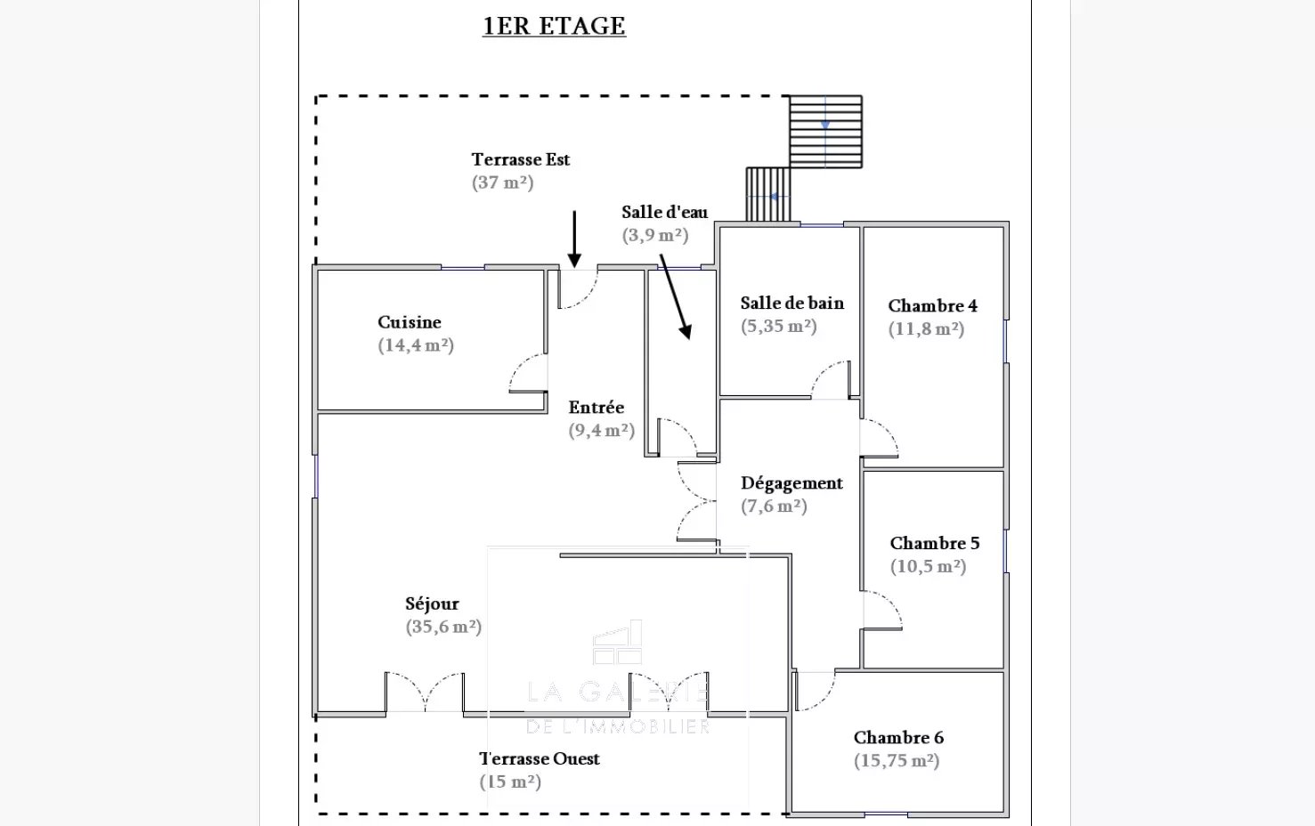 A l'étage vous trouverez à nouveau un spacieux séjour, une cuisine, trois chambres, une salle d'eau et une salle de bains et deux terrasses.