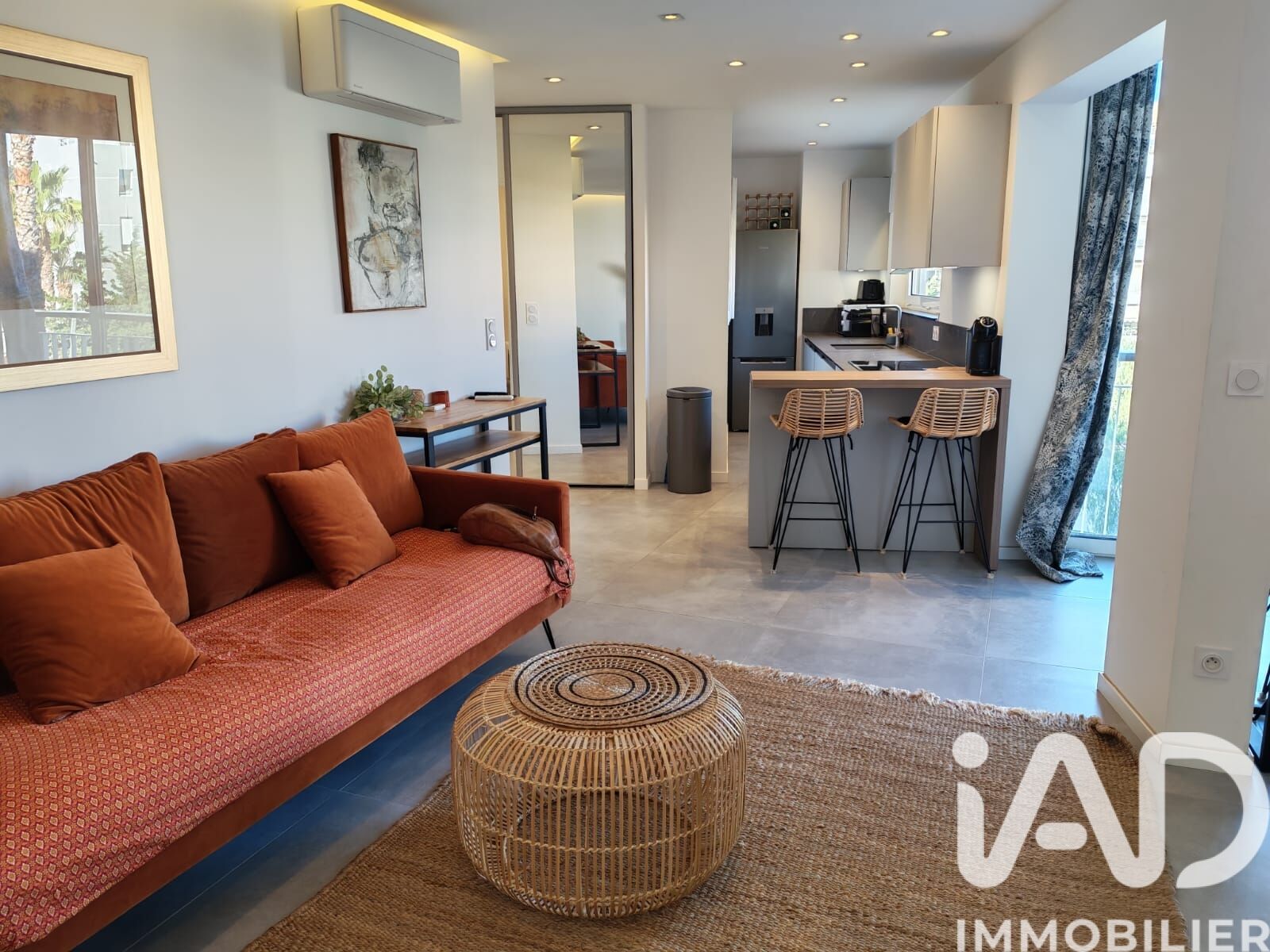 Iad France - Virginie Duponchel vous propose : Cannes Palm Beach, Pointe Croisette Appartement 2 pièces, à seulement 200 m à pied des célèbres plages du Mouré Rouge. Situé dans une résidence sécurisée avec ascenseur, cet appartement rénové avec soin offre un cadre de vie exceptionnel. D'une surface totale de 57 m², il se compose d'une chambre spacieuse de 16 m², d'une salle d'eau moderne avec deux vasques, d'un WC séparé, ainsi que d'une cuisine ouverte entièrement équipée. La pièce de vie lumineuse et chaleureuse s’ouvre sur un joli balcon. Appartement entièrement climatisé. Les amoureux de la mer seront comblés : le port et la plage se trouvent à seulement 200 mètres de l’appartement. De multiples commerces de proximité, le stade des Hespérides ainsi que les lignes de bus facilitent également votre quotidien. Pour un confort optimal, l’appartement dispose d’une place d'un garage fermé privatif en sous-sol. Ne manquez pas cette opportunité unique d’acquérir un véritable bijou immobilier à Cannes, alliant élégance, modernité et confort. Laissez-vous séduire par ce bien d’exception. La presente annonce immobiliere vise 2 lots situés dans une copropriété de 250 lots au total et ne faisant l'objet d'aucune procédure en cours citée à l'article L. 721-1 du code de la construction et de l'habitation. Montant moyen mensuel de charges déclaré par le vendeur : 164.74€ par mois (soit 1976.84 € annuel). Honoraires d'agence à la charge du vendeur. Information d'affichage énergétique sur ce bien : classe ENERGIE C indice 118 et classe CLIMAT C indice 17. Les informations sur les risques auxquels ce bien est exposé, y compris l'obligation légale de débroussaillement, sont disponibles sur le site Géorisques : http://www.georisques.gouv.fr. La présente annonce immobilière a été rédigée sous la responsabilité éditoriale de Mme Virginie Duponchel mandataire indépendant en immobilier (sans détention de fonds), agent commercial de la SAS I@D France immatriculé au RSAC de CANNES sous le numéro 989055710, titulaire de la carte de démarchage immobilier pour le compte de la société I@D France SAS.