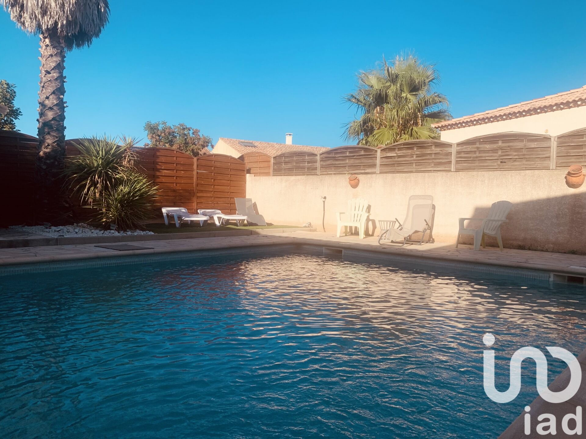 Grande terrasse couverte de 50 m² sur l'avant, seconde terrasse à l'arrière. Garage indépendant d'environ 40 m².