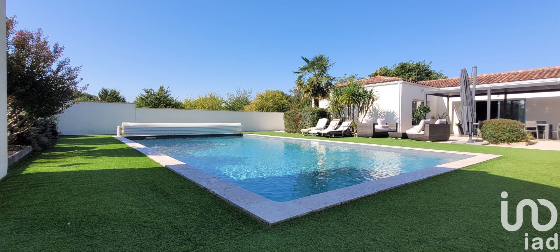 Iad France - Philippe Neveu vous propose : REF : 1849032 -PNE- Maison individuelle de plain‑pied construite en 2002, offre 205 m² habitables avec un studio d'environ 28 m² sur un terrain paysager de 4 673 m². Cette demeure de huit pièces comprend quatre chambres, un bureau, un salon spacieux et une cuisine fonctionnelle, organisés sur un même niveau pour un confort optimal et une circulation fluide. La distribution nuit / jour est pensée pour la vie de tous les jours : une salle d'eau dessert les espaces nuit et la vaste terrasse, orientée plein sud, propose une vue dégagée sur la piscine et le jardin paysager. Le bien présente des prestations de qualité : chauffage au sol, poêle à granulés, ventilation mécanique, fibre optique et système d'alarme. Un garage double, un parking invité et une piscine extérieure complètent l'ensemble. Des installations favorisent l'autonomie et la maîtrise des charges : panneaux solaires assurant une partie de la production électrique et un forage pour la consommation d'eau. Un hangar indépendant, accessible par une entrée séparée, peut être utilisé pour du stockage ou générer un revenu locatif. Maison en excellent état, prête à vivre, idéale pour des personnes recherchant espace, luminosité et tranquillité dans un cadre verdoyant. Visites sur rendez‑vous. Honoraires d'agence à la charge du vendeur. Information d'affichage énergétique sur ce bien : classe ENERGIE B indice 96 et classe CLIMAT A indice 3. Les informations sur les risques auxquels ce bien est exposé, y compris l'obligation légale de débroussaillement, sont disponibles sur le site Géorisques : http://www.georisques.gouv.fr. La présente annonce immobilière a été rédigée sous la responsabilité éditoriale de M Philippe Neveu mandataire indépendant en immobilier (sans détention de fonds), agent commercial de la SAS I@D France immatriculé au RSAC de saintes sous le numéro 429030653, titulaire de la carte de démarchage immobilier pour le compte de la société I@D France SAS.