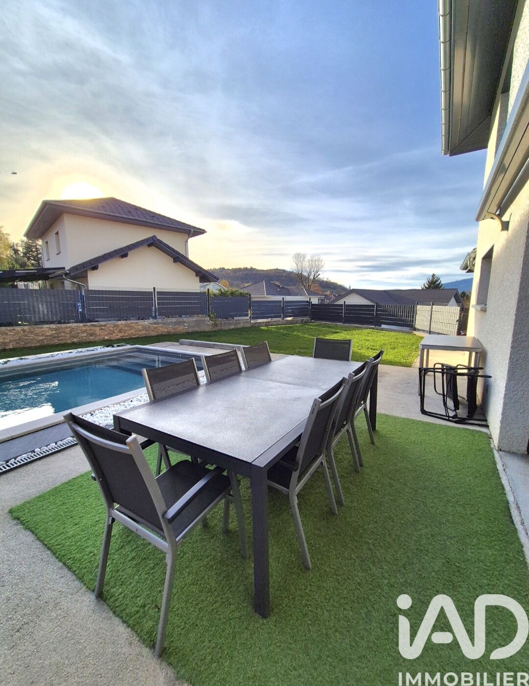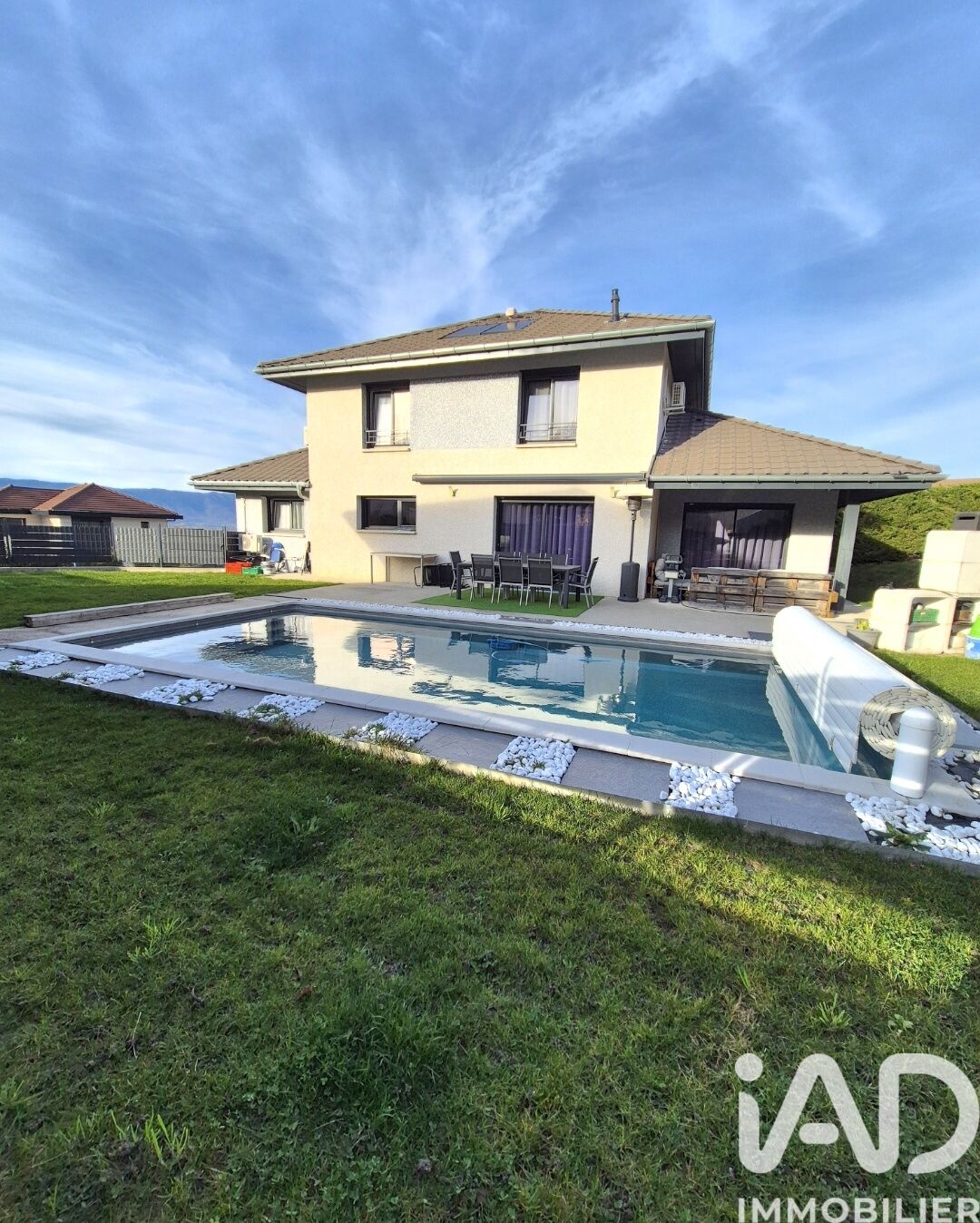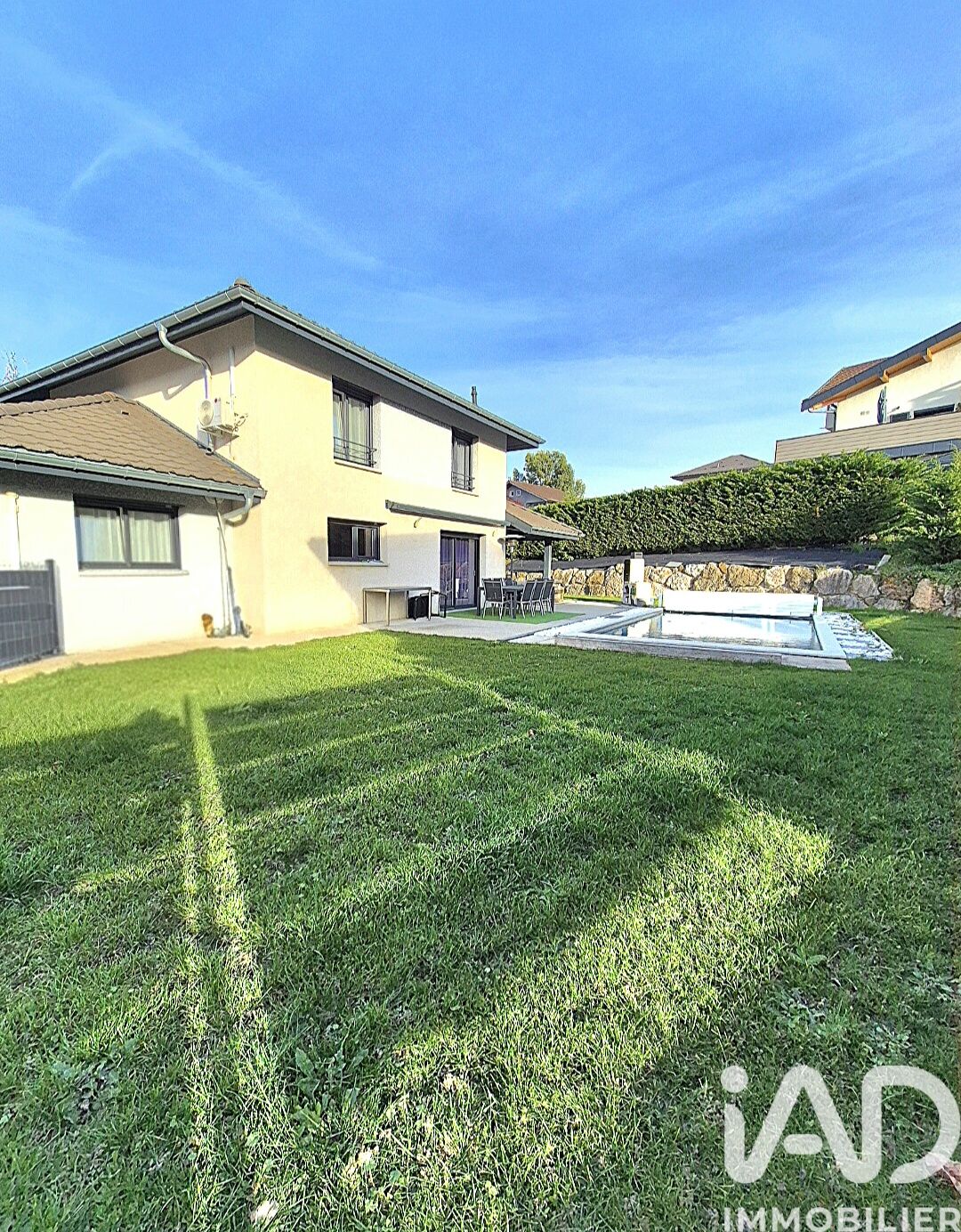 Iad France - Mickaël Bajot vous propose : EXCLUSIVITÉ – Vers (74160) – Maison contemporaine de 2019,150 m² habitables. Je vous propose en exclusivité cette maison récente signée Artis, alliant confort, modernité et prestations de qualité. Implantée sur un joli terrain de 711 m² avec terrasse et piscine Desjoyaux chauffée, elle offre un cadre de vie privilégié. La partie principale comprend une vaste pièce de vie de 65 m² avec cuisine entièrement équipée et îlot central, ainsi qu’une suite parentale au rez-de-chaussée avec dressing et salle d’eau. À l’étage, vous trouverez trois chambres spacieuses, une grande salle de bains et un WC indépendant. La maison est équipée d’une climatisation réversible pilotable à distance et offre également la possibilité d’installer un poêle à bois ou à granulés pour renforcer le confort thermique et l’atmosphère de la pièce de vie. Un sous-sol complet de 100 m² vient compléter l’ensemble, avec un double garage motorisé, d’importants espaces de rangement et une buanderie. Un bien rare sur un secteur recherché, proposant des prestations de qualité et un environnement privilégié. Je reste à votre disposition pour tout renseignement complémentaire et pour organiser une visite. Honoraires d'agence à la charge du vendeur. Information d'affichage énergétique sur ce bien : classe ENERGIE B indice 89 et classe CLIMAT B indice 10. Les informations sur les risques auxquels ce bien est exposé, y compris l'obligation légale de débroussaillement, sont disponibles sur le site Géorisques : http://www.georisques.gouv.fr. La présente annonce immobilière a été rédigée sous la responsabilité éditoriale de M Mickaël Bajot mandataire indépendant en immobilier (sans détention de fonds), agent commercial de la SAS I@D France immatriculé au RSAC de THONON LES BAINS sous le numéro 952272318, titulaire de la carte de démarchage immobilier pour le compte de la société I@D France SAS.