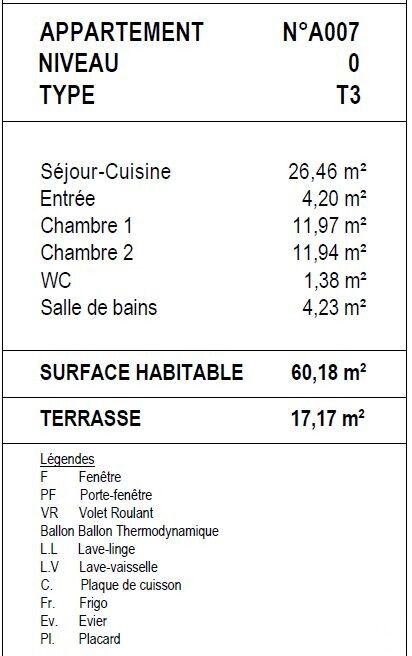 Iad France - Jamey Costantini Gregory (07 83 56 39 14) vous propose : Cet appartement en rez-de-jardin de 60 m² environ situé à Cagnes-sur-Mer offre un cadre de vie idéal, à la fois pratique et agréable. Dès l’entrée, vous accédez à une cuisine ouverte sur un spacieux séjour de 27 m² environ, un espace convivial et lumineux qui constitue le cOEur de l’appartement, parfait pour recevoir ou pour un quotidien confortable. La partie nuit se compose de deux chambres de 12 m² environ chacune, offrant assez d’espace pour accueillir un grand lit, un bureau ou des rangements. Une salle d’eau bien agencée complète cet espace de vie, apportant tout le confort nécessaire. À l’extérieur, un jardin privé de 60 m² environ prolonge l’espace intérieur et vous permet de profiter d’un coin de verdure personnel, idéal pour les repas en plein air, les jeux d’enfants ou les moments de détente en extérieur. Le bien est idéalement situé : l’autoroute A8 est facilement accessible, offrant des déplacements rapides, avec l’aéroport de Nice à seulement 7 minutes en voiture et le centre technologique de Sophia Antipolis à 17 minutes. Pour les sorties et les loisirs, le centre commercial Polygone Riviera est tout proche, et la gare SNCF est accessible en seulement 9 minutes à pied, facilitant vos trajets quotidiens. L'appartement comprend des fenêtres (F), des portes-fenêtres (PF), des volets roulants (VR), un ballon thermodynamique, et des emplacements pour lave-linge (L. L), lave-vaisselle (L. V), plaque de cuisson (C.), réfrigérateur (Fr.), évier (Ev.) et placard (Pl.). Veuillez noter que les informations graphiques sont indicatives et peuvent varier selon les besoins techniques. Les côtes et les surfaces sont approximatives, sujettes aux exigences de construction et aux tolérances d'exécution. Le mobilier et l'électroménager ne sont pas inclus. Honoraires d’agence à la charge du vendeur. Bien non soumis au DPE. Les informations sur les risques auxquels ce bien est exposé sont disponibles sur le site Géorisques : www.georisques.gouv.fr. La présente annonce immobilière a été rédigée sous la responsabilité éditoriale de M. Jamey Costantini Gregory EI (ID 78092), mandataire indépendant en immobilier (sans détention de fonds), agent commercial de la SAS I@D France immatriculé au RSAC de ANTIBES sous le numéro 883222135, titulaire de la carte de démarchage immobilier pour le compte de la société I@D France SAS. Retrouvez tous nos biens sur notre site internet. www.iadfrance.fr.