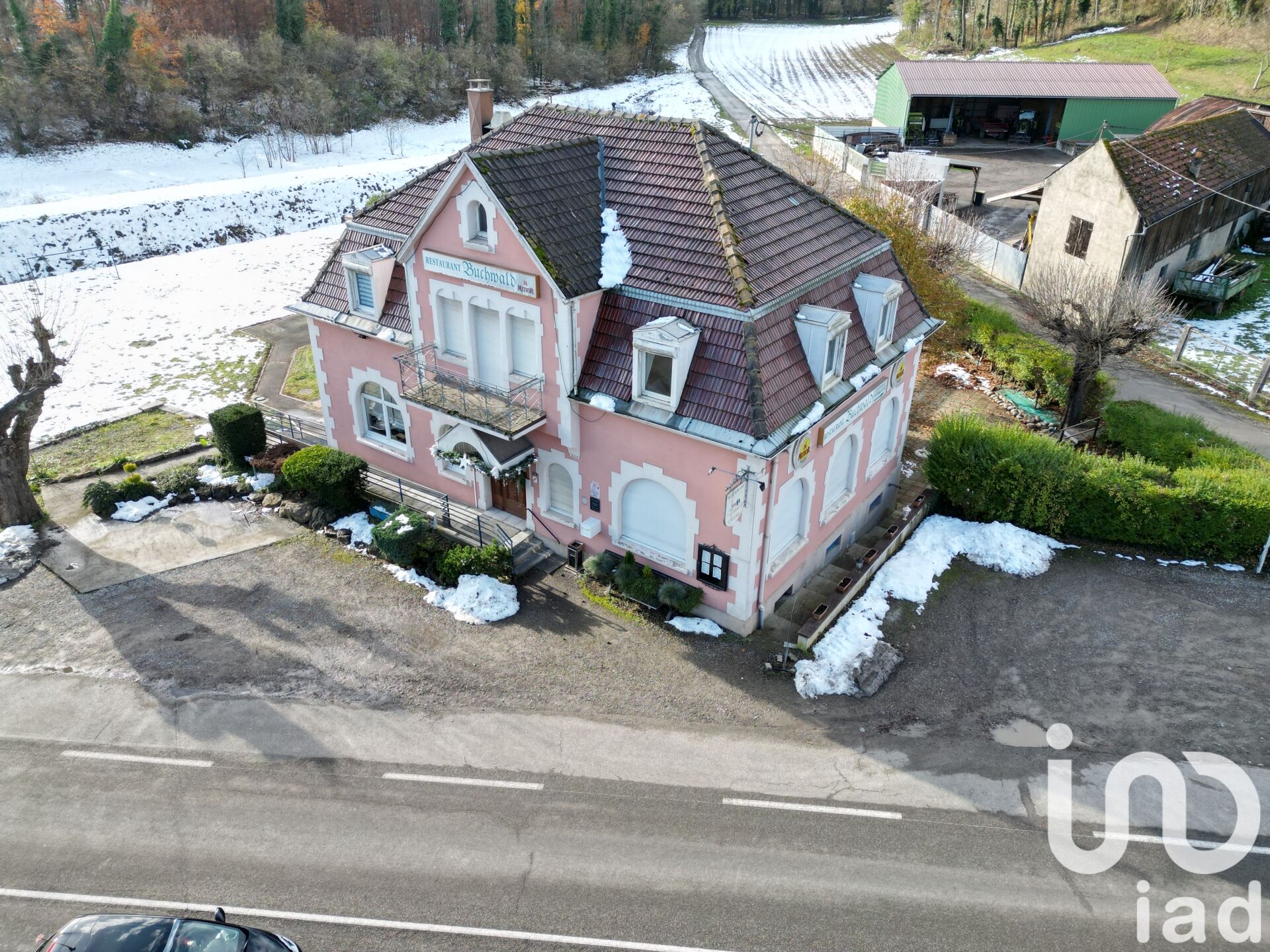 Iad France - Arnaud Demuth vous propose : Vente immeuble de 1908 (restaurant + appartement) plus le fonds de commerce sur un terrain de 31.06 ares. Licence IV comprise. Le bâtiment se situe à côté d'un axe passant, dans un cadre verdoyant à l'extérieur de la commune. Il se compose au rdc : une entrée, une grande salle de réception, un bar, une cuisine professionnelle équipée, des sanitaires aux normes. Au sous-sol on trouve un caveau, un bar, 2 W. C, buanderie, local technique, réserve. S'ajoute à l'étage un grand logement de 110 m², 5 pièces, 4 chambres, une salle d'eau avec douche et W. C, un débarras, un bureau et d'une grande pièce de vie lumineuse. À l'extérieur on trouve une grande terrasse avec une cuisine extérieur, une dépendance, un terrain de pétanque et des places de parking viennent compléter ce bien. Chauffage Gaz - radiateur, fenêtres double vitrage, ossature PVC, volets roulants (à bandes, électriques ou manivelles), assainissement fosse septique, adoucisseur, connectique fibre optique. Honoraires d'agence à la charge du vendeur. Information d'affichage énergétique sur ce bien : classe ENERGIE E indice 288 et classe CLIMAT E indice 63. Les informations sur les risques auxquels ce bien est exposé, y compris l'obligation légale de débroussaillement, sont disponibles sur le site Géorisques : www.georisques.gouv.fr. La présente annonce immobilière a été rédigée sous la responsabilité éditoriale de M Arnaud Demuth mandataire indépendant en immobilier (sans détention de fonds), agent commercial de la SAS I@D France immatriculé au RSAC de Mulhouse sous le numéro 822482527, titulaire de la carte de démarchage immobilier pour le compte de la société I@D France SAS.