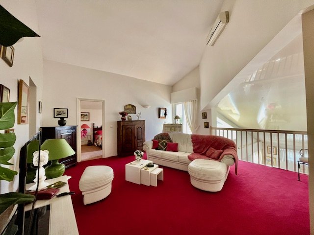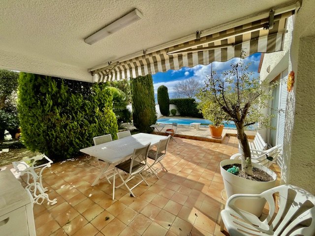 Nouveau ! RARE ! Perpignan SUD, Porte d'Espagne, au calme dans une impasse. Magnifique Villa d'Architecte, 3 faces, de type F6 en R+1, d'environ 250m² utiles avec une suite en RDC + véranda, garage, buanderie et Terrasses. Le tout édifié sur une parcelle arboré avec une belle piscine d'environ 513m² ! Un Véritable Coup de Coeur !