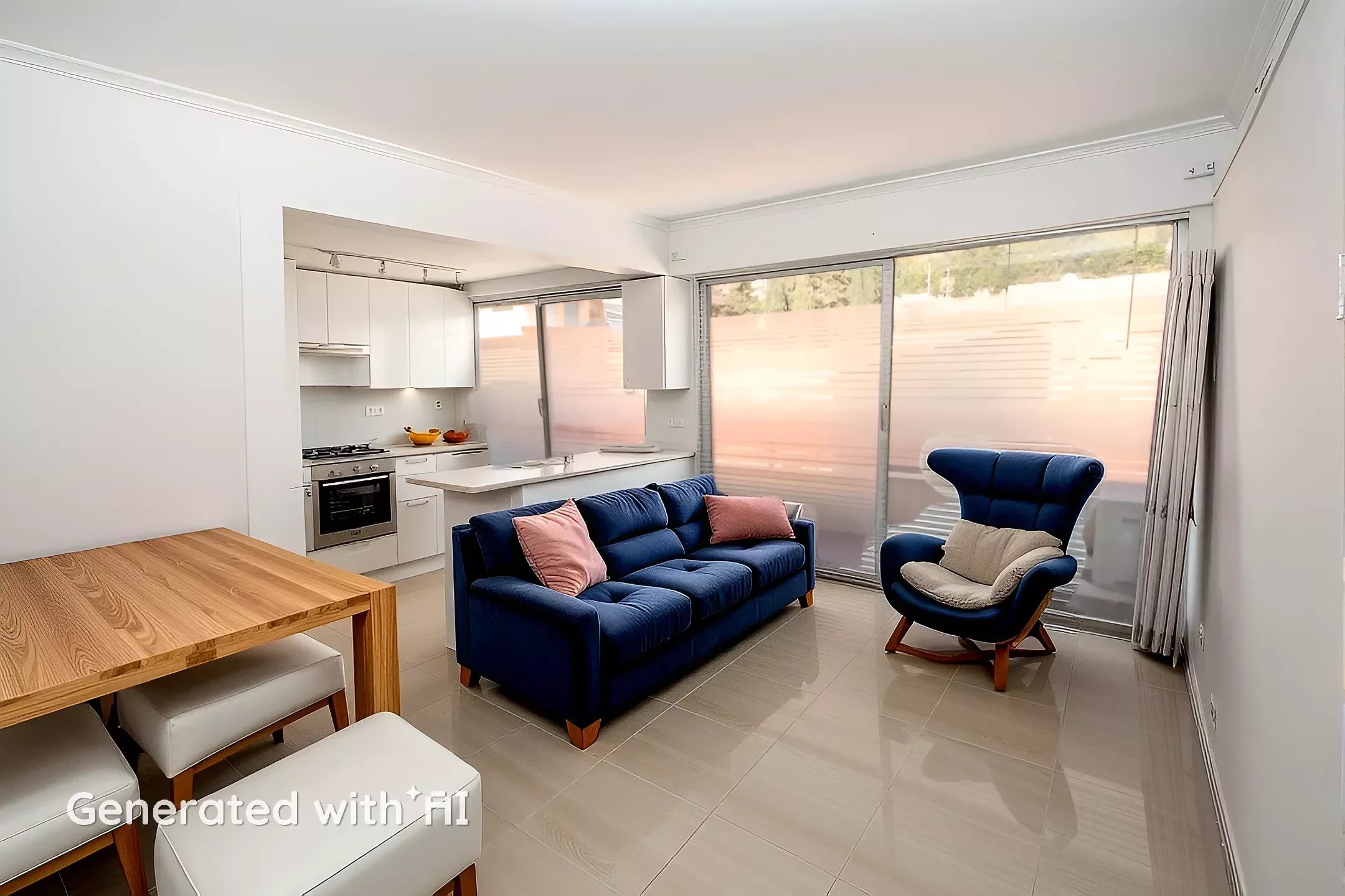 Equipped with modern amenities, the apartment includes double glazing, ensuring comfort and energy efficiency. The open layout connects the living space with the kitchen area, providing a versatile environment for relaxation and entertaining. The practical design caters to contemporary living, offering convenience alongside captivating views.