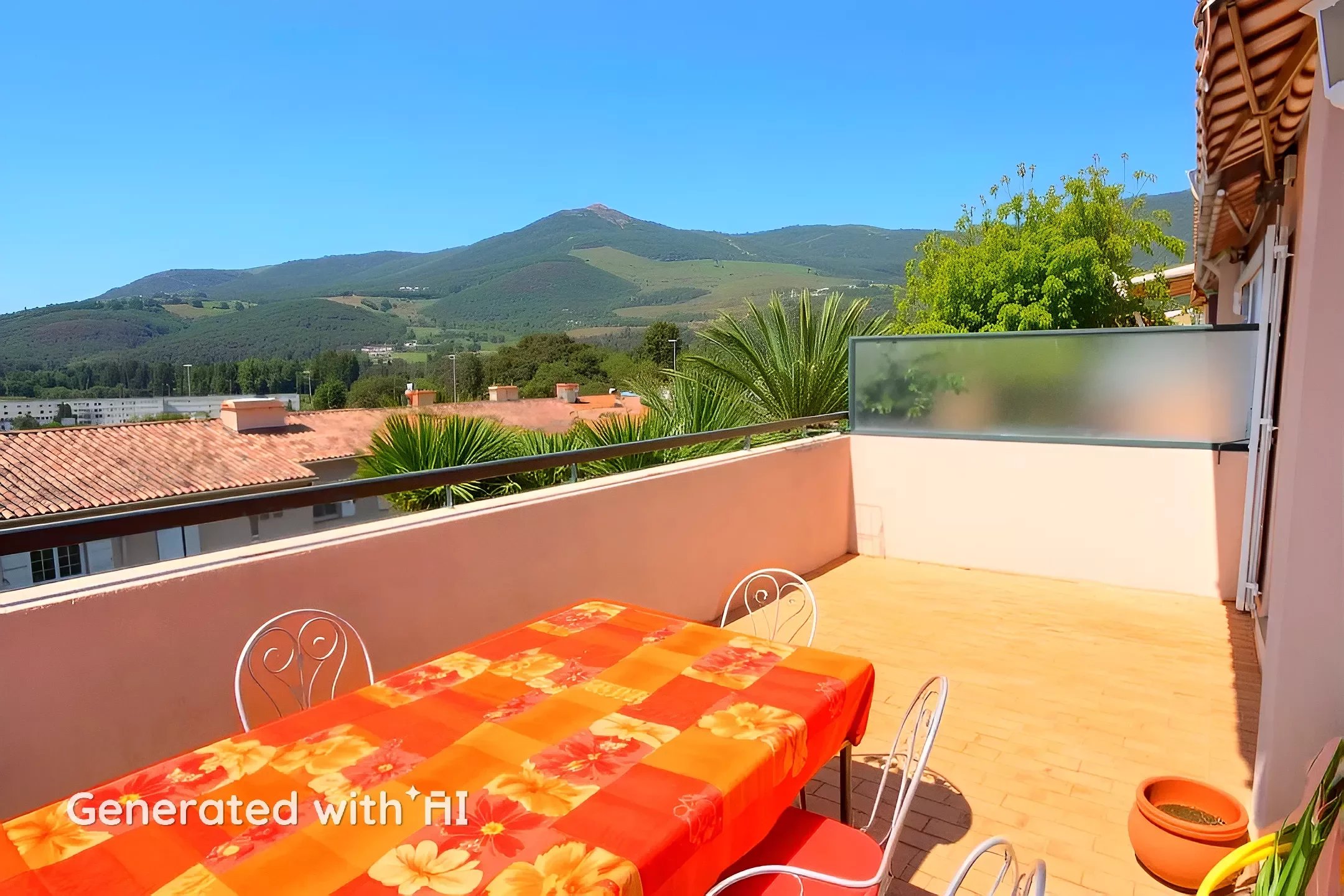 Spanning approximately 74 m², the apartment features a large entrance hall, an open-plan kitchen, a spacious and bright living room with a dining area, and large French windows leading to the south-facing terrace. From the terrace, enjoy splendid, unobstructed views of the hills, the city, and a glimpse of the sea.