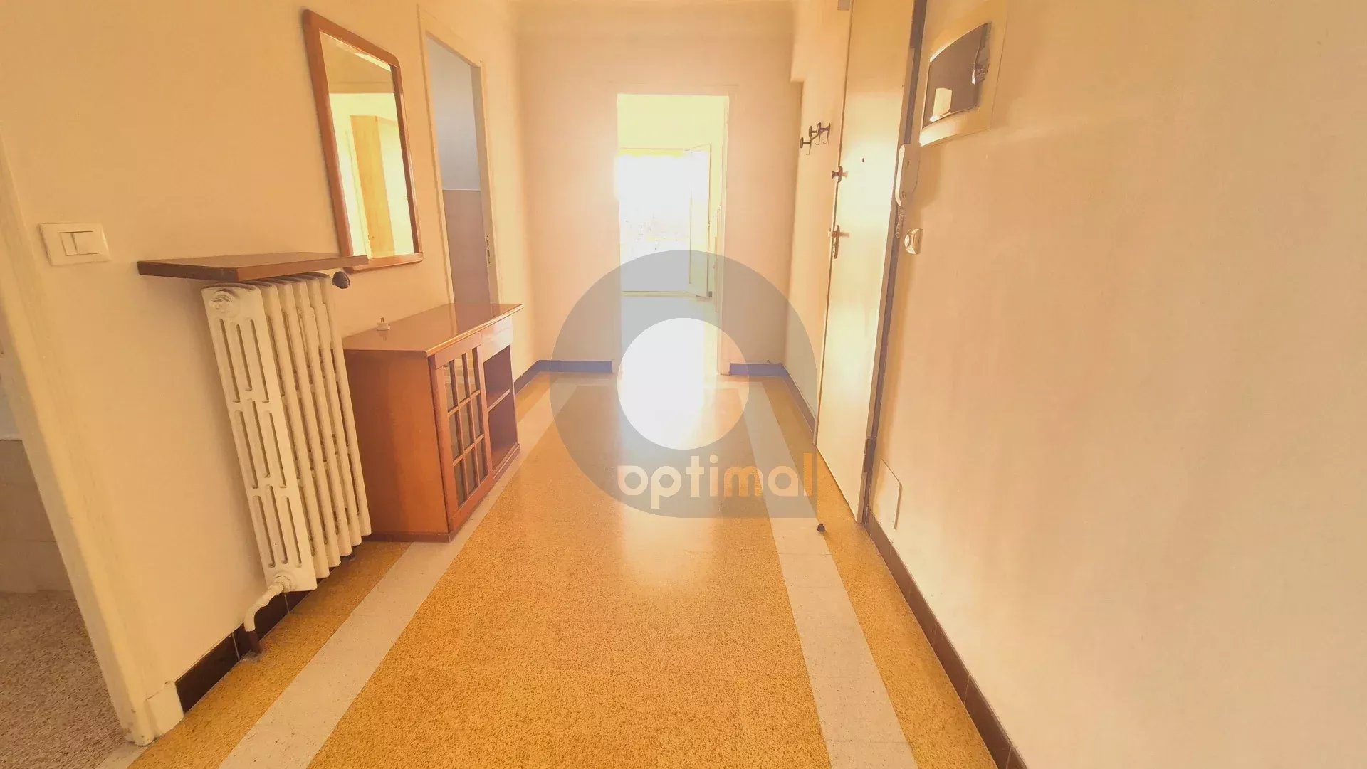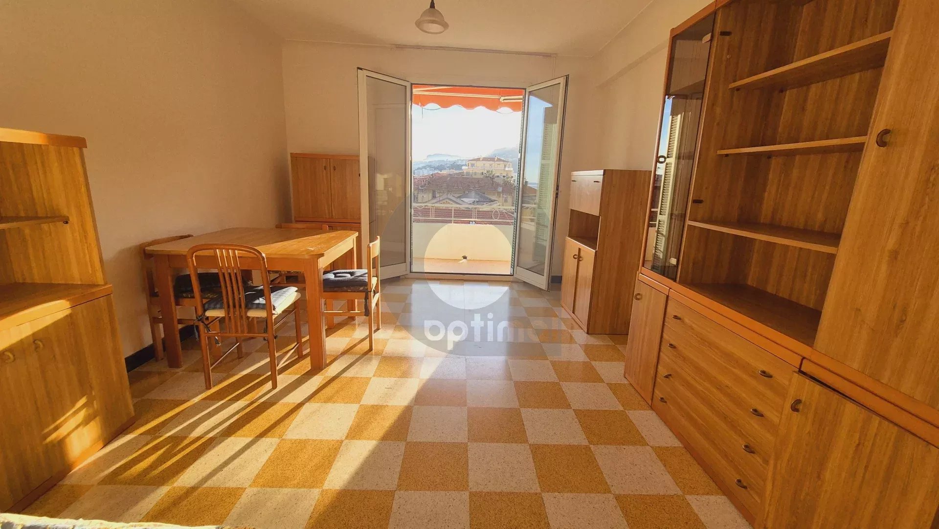 Menton city center: 250m from beaches and pedestrian street, spacious 55 m² two-bedroom apartment with balcony. This apartment benefits from triple exposure, a panoramic sea and town view, calm and bright. The apartment comprises an entrance hall, a living room opening onto the balcony, a bedroom, a kitchen, a bathroom and an indiv. toilet with window.