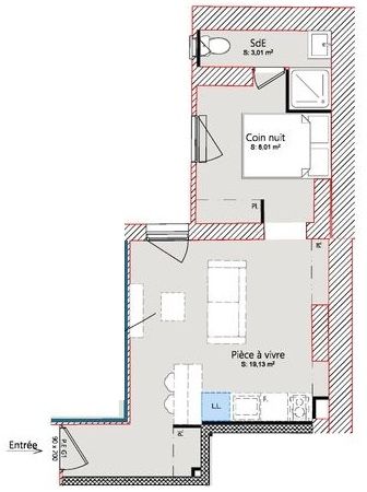 Jolie rénovation en cours pour cet appartement T1 bis de 30m2, en étage.