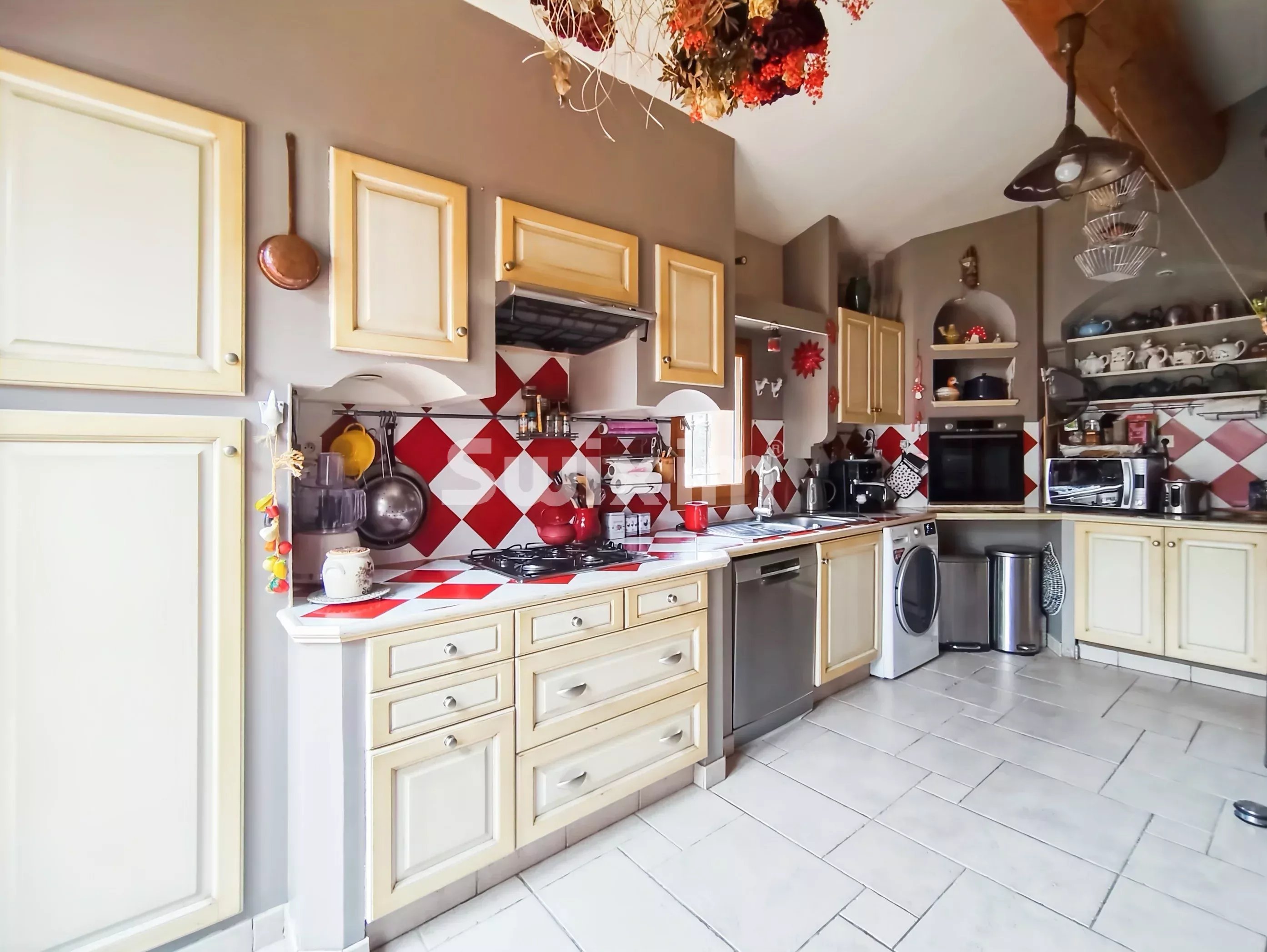 Réf. 2415LD: MORNAS. Family villa with large garage, covered pool and 2000 m² garden. It offers a beautiful 50 m² living room with fireplace opening onto the terrace, a fitted kitchen, a master suite (with dressing room, bathroom: shower, whirlpool bath and toilet), and 3 spacious bedrooms with dressing rooms. A large terrace gives access to a beautiful covered swimming pool (completely uncovered), a pool-house, an outbuilding, a machine room, 2 garden sheds and fruit trees. Garage of approx. 44 m², large cellar, motorized gate, motor home parking possible. Quality materials, generous volumes, air conditioning, let yourself be seduced by this villa. Visit without delay!