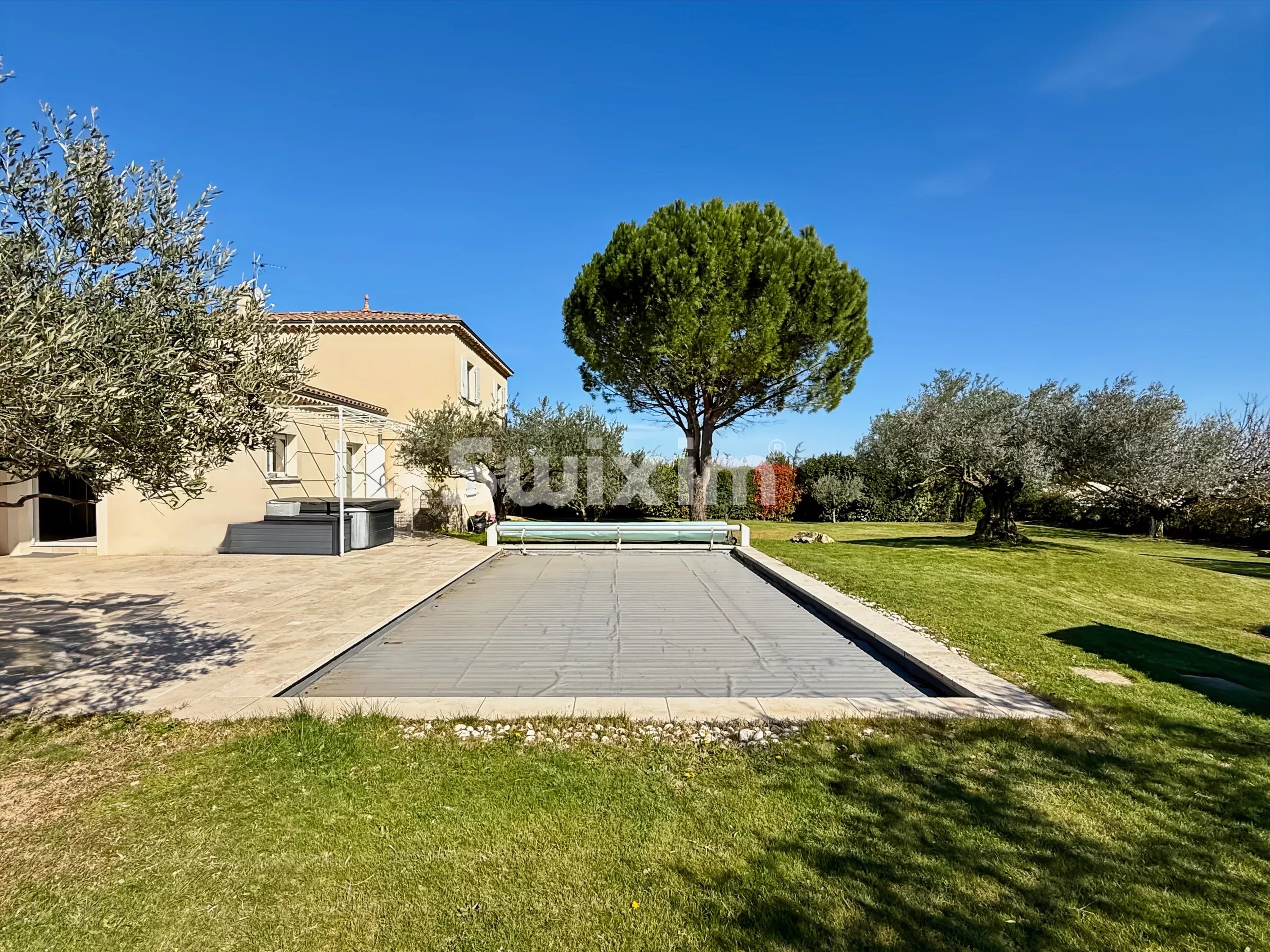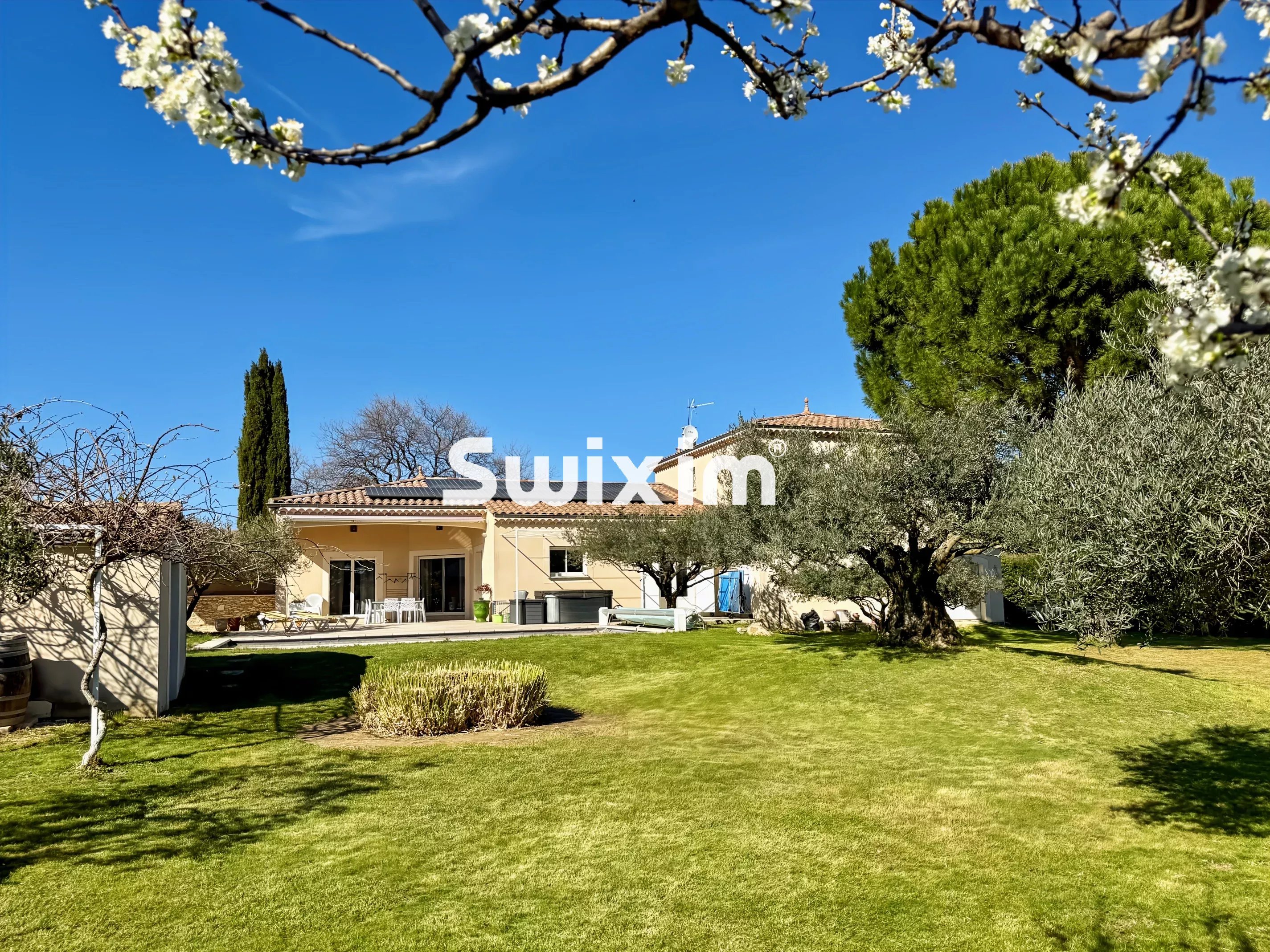 Réf 2414FM Bourg saint Andéol: comfortable villa with swimming pool, large garage and superb enclosed grounds of 2500m²! It offers a kitchen opening onto a living room, 1 bedroom on the ground floor and 3 bedrooms upstairs, bathroom with shower and bathtub. Cellar ideal for wine lovers. Swimming pool with large sheltered terrace, jacuzzi, pétanque court and summer kitchen. Solar panels. 70m² garage with motorized gate. Large gravel courtyard ideal for parking several vehicles/camper vans. Situated in a quiet area outside a housing estate, let yourself be charmed by this comfortable villa!