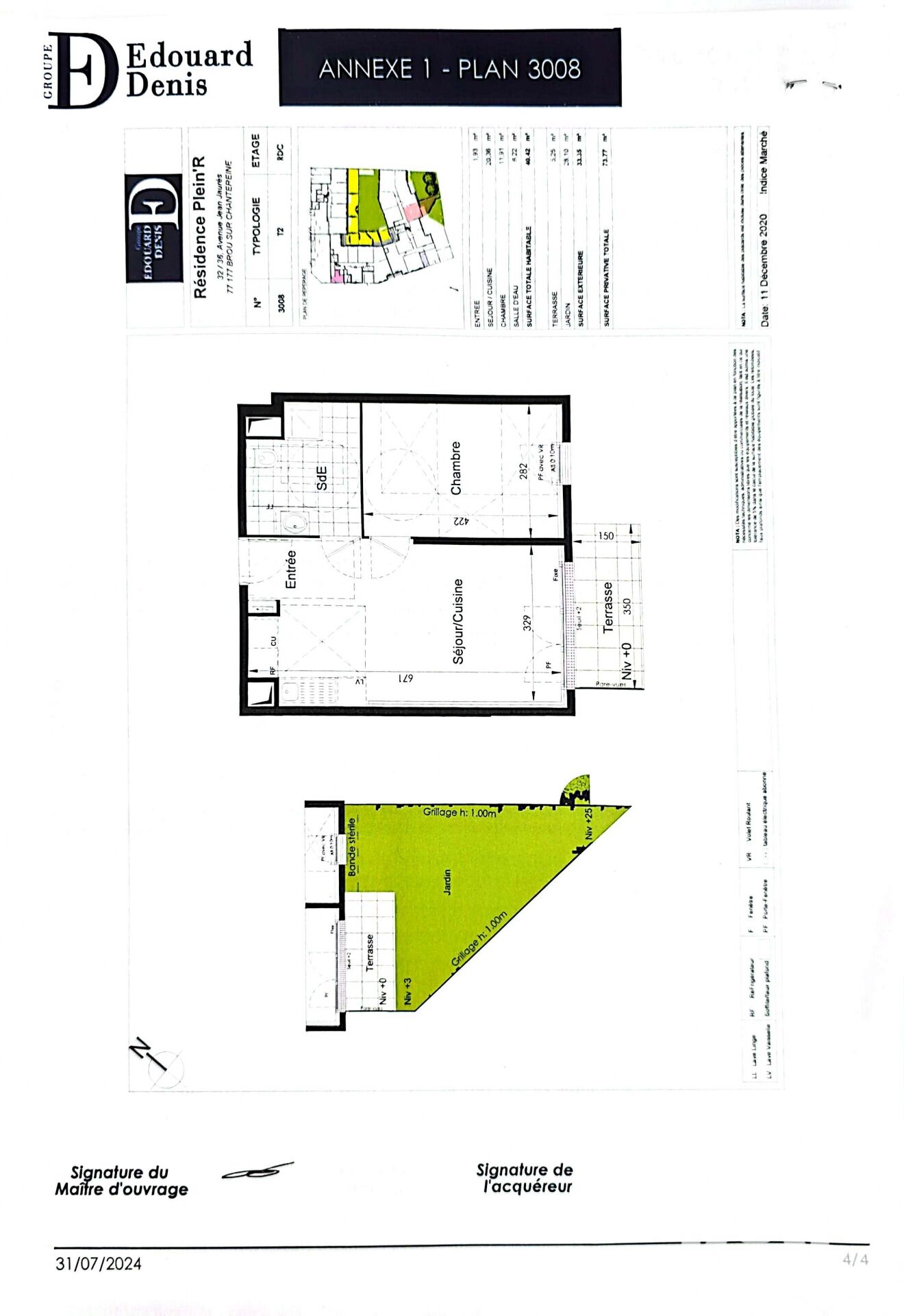 Iad France - Floriane Alexieff vous propose : À Brou-sur-Chantereine limite Vaires sur Marne, découvrez ce bel appartement T2 de 40,42 m², niché dans une résidence récente de 2024. Vous serez séduit par son séjour lumineux avec coin cuisine ouvrant sur une terrasse et un jardin privatif de 33 m² en exposition SUD : un véritable havre de paix pour profiter des beaux jours. La partie nuit propose une chambre spacieuse donnant également sur le jardin, ainsi qu’une salle d’eau moderne avec WC. Une place de parking en sous-sol complète ce bien. L’atout majeur ? Toutes les commodités sont à deux pas : commerces, transports et services. La gare de Vaires-sur-Marne (ligne P) est accessible en seulement 18 minutes à pied, et vous relie à Paris Gare de l’Est en 17 minutes. Un cadre de vie agréable, pratique et moderne… Que vous soyez à la recherche de votre première acquisition ou d’un investissement locatif sûr, cet appartement est une opportunité à saisir sans attendre ! La presente annonce immobiliere vise 2 lots situés dans une copropriété de 66 lots au total et ne faisant l'objet d'aucune procédure en cours citée à l'article L. 721-1 du code de la construction et de l'habitation. Montant moyen mensuel de charges déclaré par le vendeur : 139€ par mois (soit 1668 € annuel). Honoraires d'agence à la charge du vendeur. Information d'affichage énergétique sur ce bien : classe ENERGIE C indice 77 et classe CLIMAT C indice 16. Les informations sur les risques auxquels ce bien est exposé, y compris l'obligation légale de débroussaillement, sont disponibles sur le site Géorisques : http://www.georisques.gouv.fr. La présente annonce immobilière a été rédigée sous la responsabilité éditoriale de Mme Floriane Alexieff mandataire indépendant en immobilier (sans détention de fonds), agent commercial de la SAS I@D France immatriculé au RSAC de MEAUX sous le numéro 812199438, titulaire de la carte de démarchage immobilier pour le compte de la société I@D France SAS.