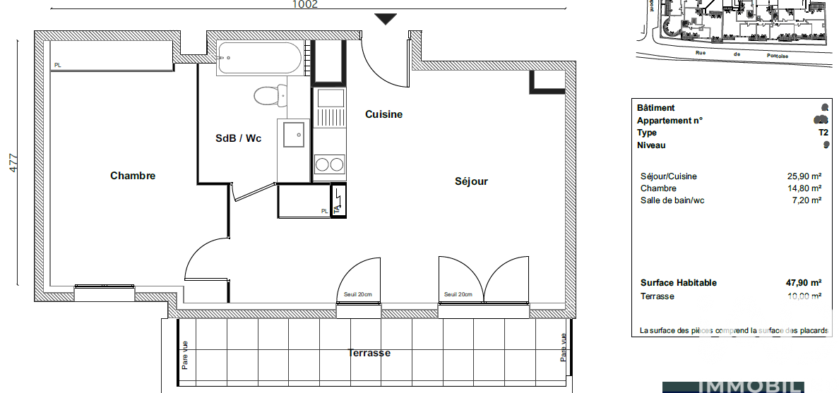 Iad France - Elodie Lanselle vous propose : BEZONS - CENTRE VILLE - RESIDENCE COUPOLE ART DECO * Dispositif PINEL - Soumis a un plafond de revenus * Dans une résidence de 2025, venez découvrir cet appartement situé au 5ème et dernier étage, de type 2 pièces non meublé, comprenant : un séjour, une cuisine ouverte aménagée et semi équipée, une chambre avec placard, une salle de bains avec WC. Une terrasse. Un parking peut être loué en supplément à 80 € / mois. Logement disponible à partir du mi décembre 2025. ATTENTION : Le logement sera livré le 17 décembre, donc aucune visite ne peut avoir lieu avant cette date. Le DPE sera également délivré ce jour. POUR POSTULER, il faut impérativement m'envoyer par email votre dossier complet, à savoir : - Carte d'identité à jour - Vos DEUX derniers avis d'imposition - Contrat de travail ou attestation employeur de moins de 3 mois - 3 derniers bulletins de paies - Dernière quittance de loyer ou attestation d'hébergement (avec pièce d'identité de l'hébergeur) Si vous avez des questions, vous pouvez me contacter par mail ou par sms. Bien non soumis au DPE. Les informations sur les risques auxquels ce bien est exposé, y compris l'obligation légale de débroussaillement, sont disponibles sur le site Géorisques : http://www.georisques.gouv.fr. La présente annonce immobilière a été rédigée sous la responsabilité éditoriale de Mme Elodie Lanselle mandataire indépendant en immobilier (sans détention de fonds), agent commercial de la SAS I@D France immatriculé au RSAC de PONTOISE sous le numéro 952376648, titulaire de la carte de démarchage immobilier pour le compte de la société I@D France SAS. Location non meublée. Montant du loyer mensuel charges comprises : 889.00 euros / mois. Provision mensuelle avec récupération annuelle : 85.00 euros / mois. Zone soumise à encadrement : non. Dépôt de garantie : 804 euros. Honoraires TTC à la charge du locataire : 431 euros (soit 8€ / m²).