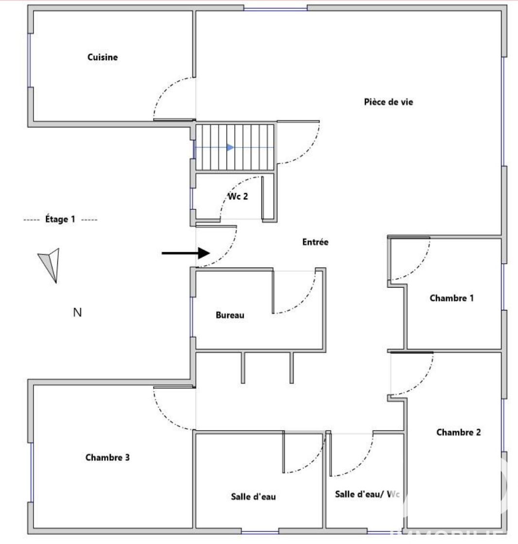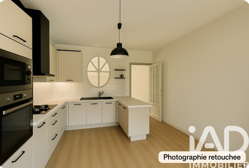 Iad France - Enora Chouet vous propose : OFFRE D'ACHAT VALIDÉE Maison en impasse, composée au rez-de-chaussée d'une entrée avec rangement sous escalier, WC avec lave-mains, pièce de vie lumineuse avec triple exposition (Est, Sud et Ouest) et cuisine aménagée. À l'étage, un palier / dégagement avec placards distribue 3 chambres, un bureau (7,5 m²), WC et une salle de bains. Un garage attenant (accès jardin et entrée), stationnements privés devant le garage. Mitoyenne par pignon Nord (garage et une chambre à l'étage), le jardin clos et arboré dispose d'une terrasse avec pergola. Rafraîchissement à prévoir mais pas de gros travaux (chaudière gaz récente). Maison construite en 2002. Terrain de 274 m². Honoraires d'agence à la charge du vendeur. Information d'affichage énergétique sur ce bien : classe ENERGIE C indice 125 et classe CLIMAT C indice 24. Les informations sur les risques auxquels ce bien est exposé, y compris l'obligation légale de débroussaillement, sont disponibles sur le site Géorisques : http://www.georisques.gouv.fr. La présente annonce immobilière a été rédigée sous la responsabilité éditoriale de Mme Enora Chouet mandataire indépendant en immobilier (sans détention de fonds), agent commercial de la SAS I@D France immatriculé au RSAC de Rennes sous le numéro 529807562, titulaire de la carte de démarchage immobilier pour le compte de la société I@D France SAS.