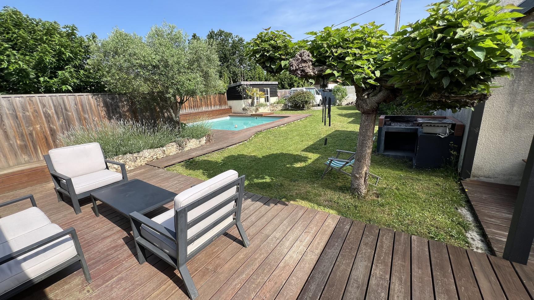 Secteur La Brède à 10kms du centre de La Brède Proche toutes commodités à pied, coup de coeur assuré pour cet ensemble immobilier en pierre édifié sur un terrain sans vis-à-vis de 734 m². Il se compose d'une maison de 186 m² habitables aux beaux volumes alliant l'ancien et le moderne, et d'un T2 indépendant de 43 m² avec jardinet loué meublé 479€. Au rez-de-Chaussée de la maison, dès l'entrée vous serez séduit par son vaste hall d'accueil, sa cuisine équipée de 28 m² avec coin repas donnant sur terrasses exposées ouest, son salon / séjour lumineux de 45 m² avec insert, son cellier / buanderie, sa chambre parentale avec dressing et sa grande salle de bains. L'étage se compose de 3 chambres et d'une salle d'eau. À l'extérieur, une piscine chauffée et deux abris complètent ce bien rare sur le secteur. À ne pas manquer ! Le plus : des panneaux photovoltaïques pour l'autoconsommation et la production revente. NOTRE OBJECTIF : VOTRE SATISFACTION !