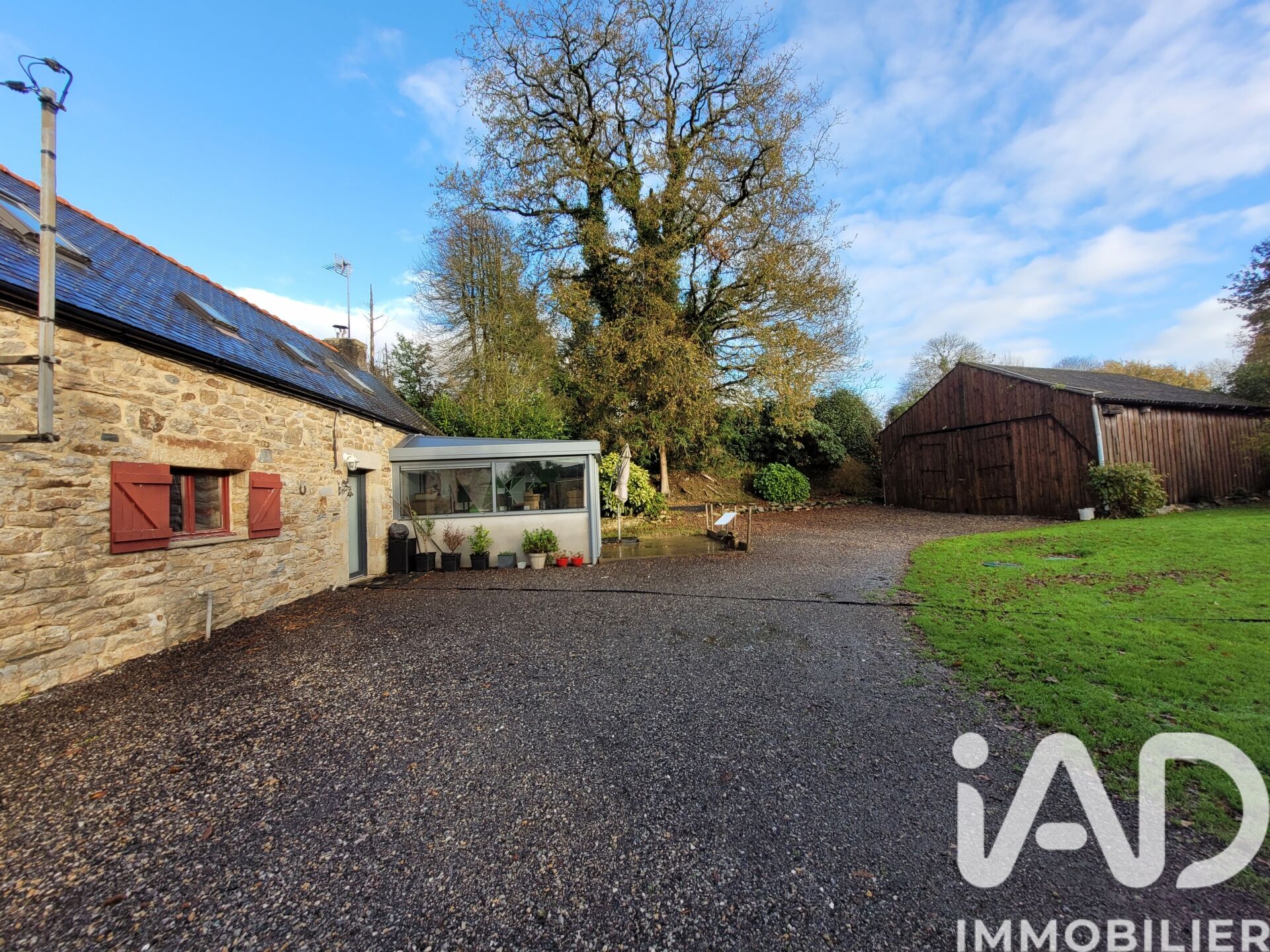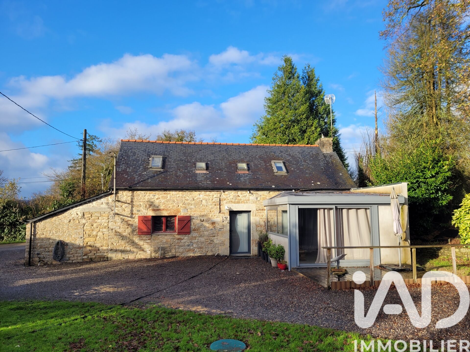 Iad France - Celine Charmot vous propose : Longère en campagne à 35 mn de Quimper et 12 mn de Gourin. Sur une parcelle de plus de 800 m², cette jolie longère se compose au rez-de-chaussée d’un grand séjour de 40 m² avec espace cuisine et espace salon avec poêle à bois, d’une buanderie et d’une salle d’eau avec WC. Toujours à ce niveau, une véranda non chauffée et isolée de 14 m² pourrait agrandir votre espace de vie ou devenir avec ajout d'un radiateur une chambre parentale. À l’étage, une chambre de 9 m² habitable (13 m² au sol), un coin dressing ou bureau selon vos besoins, un coin nuit de 8 m² habitable (11 m² au sol) et un WC. Parfaitement habitable de suite, vous pourrez au fil du temps améliorer l’isolation de ce bien. À l’extérieur, un jardin avec un hangar de 60 m² et une cour pour le stationnement de vos véhicules. Fenêtres double vitrage des années 1980, assainissement conforme, toiture ardoise crochets inox bon état et toiture amiante non dégradée sur le hangar. Honoraires d'agence à la charge du vendeur. Information d'affichage énergétique sur ce bien : classe ENERGIE F indice 359 et classe CLIMAT C indice 11. Les informations sur les risques auxquels ce bien est exposé, y compris l'obligation légale de débroussaillement, sont disponibles sur le site Géorisques : http://www.georisques.gouv.fr. La présente annonce immobilière a été rédigée sous la responsabilité éditoriale de Mme Celine Charmot mandataire indépendant en immobilier (sans détention de fonds), agent commercial de la SAS I@D France immatriculé au RSAC de lorient sous le numéro 854007804, titulaire de la carte de démarchage immobilier pour le compte de la société I@D France SAS.