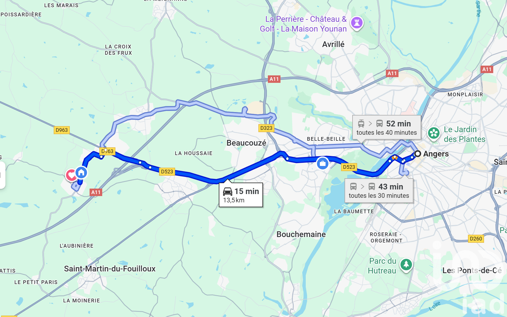 Iad France - Jean-Baptiste Macé vous propose : Retrouvez cette superbe maison familiale de 162 m², rénovée avec soin, implantée sur un terrain arboré de plus de 1 200 m² dont 300 m² alloué à l'espace jardin, avec une piscine et une grande terrasse. Atouts clés : - 5 chambres au total dont 3 au rez-de-chaussée pour une vraie vie de plain-pied - Salon lumineux avec belle hauteur et mezzanine - Cuisine aménagée et équipée, buanderie attenante - Triple exposition Est, Sud, Ouest - Jardin agréable avec piscine - Garage et stationnements - Agencement Rez-de-chaussée : entrée, dégagement desservant 3 chambres, une salle d’eau et un WC. Salon lumineux ouvert sur mezzanine avec accès à la cuisine aménagée et équipée. Buanderie puis garage. Étage : depuis la mezzanine, accès d’un côté au grenier et de l’autre à un couloir menant à 2 chambres, une salle de bain et un WC. À seulement 8 minutes en voiture de l'entrée ouest d'Angers (Belle-Beille / Lac de Maine) et 15 minutes de la place du Ralliement à Angers, sur la commune de Saint-Léger-des-Bois, commune dynamique avec superette API ouverte 7 / 7 24 / 24, boulangerie, bar-tabac PMU, coiffeur, école maternelle et primaire, de nombreux jeux, clubs sportives et associations, des accès faciles à Angers par le car 35 qui passe de très nombreuses fois dans la journée ainsi qu'un environnement plein de verdure. Habitant la commune, je me ferai un plaisir de vous présenter les atouts du quartier et les projets à venir. Visites sur rendez-vous. Appelez-moi ! Infos utiles Construction 1986 Chaudière gaz avec citerne DPE C (176) et GES C (29) Honoraires à la charge du vendeur Honoraires d'agence à la charge du vendeur. Information d'affichage énergétique sur ce bien : classe ENERGIE C indice 176 et classe CLIMAT C indice 29. Les informations sur les risques auxquels ce bien est exposé, y compris l'obligation légale de débroussaillement, sont disponibles sur le site Géorisques : http://www.georisques.gouv.fr. La présente annonce immobilière a été rédigée sous la responsabilité éditoriale de M Jean-Baptiste Macé mandataire indépendant en immobilier (sans détention de fonds), agent commercial de la SAS I@D France immatriculé au RSAC de Angers sous le numéro 945186807, titulaire de la carte de démarchage immobilier pour le compte de la société I@D France SAS.