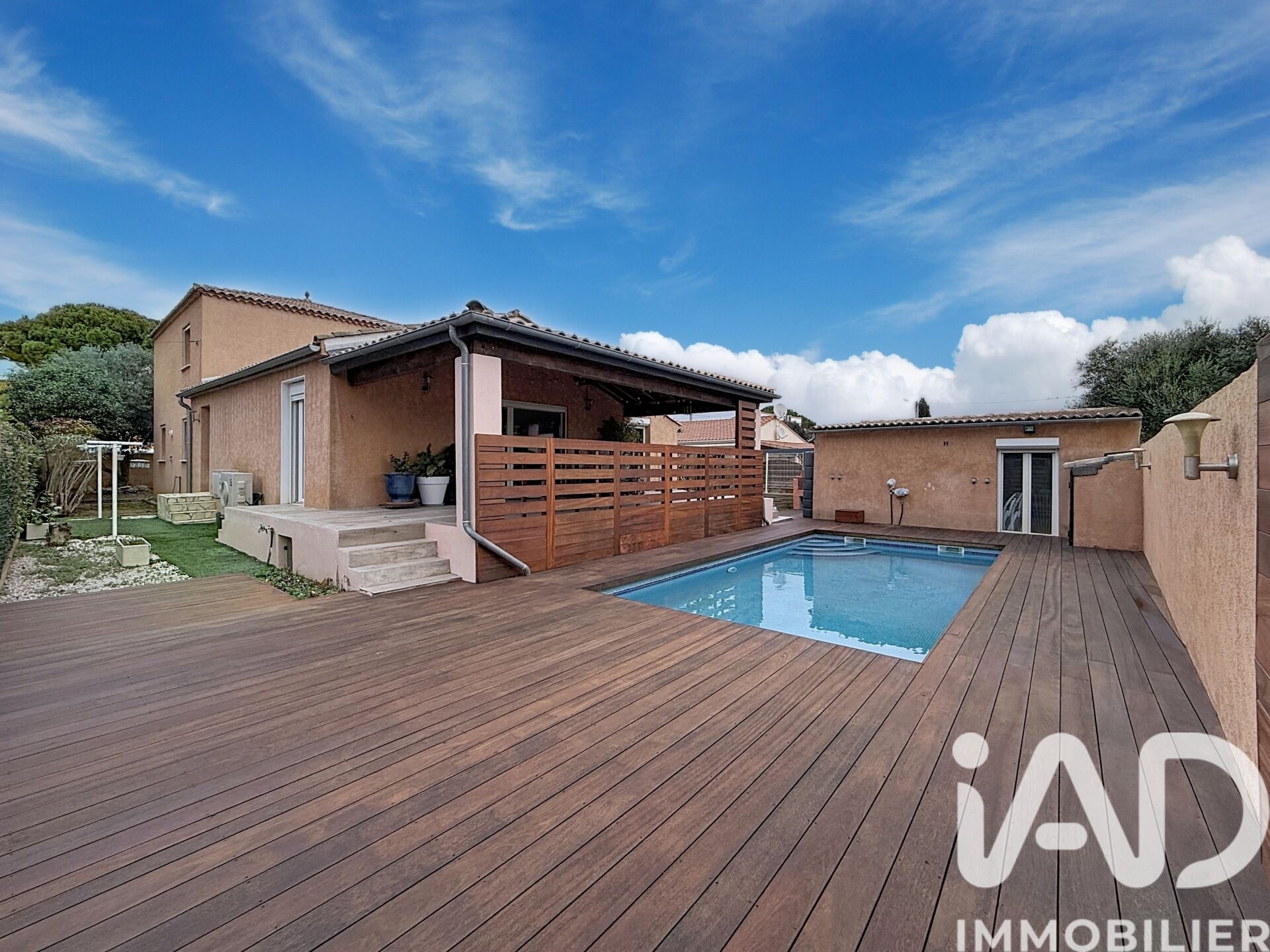 Iad France - Eléonore Cazottes vous propose : Mireval – Maison familiale de charme de 160 m² avec 5 chambres, bureau, terrasse couverte, piscine, dépendance et stationnements multiples Située au cOEur du village de Mireval, cette belle maison individuelle de 160 m² séduit par ses volumes généreux, sa fonctionnalité et son cadre de vie paisible. Idéale pour une famille, elle propose 5 chambres, un bureau et des espaces de vie pensés pour le confort et la convivialité. Au rez-de-chaussée, vous découvrirez une vaste pièce de vie baignée de lumière, composée d’un séjour chaleureux et d’une cuisine équipée ouverte, parfaite pour les moments de partage. Cet espace s’ouvre sur une magnifique terrasse carrelée et couverte d’environ 50 m², agrémentée d’un bar sur toute sa longueur, idéale pour recevoir en toute saison. Deux chambres, une salle de bain, un WC indépendant ainsi qu’un bureau complètent ce niveau. L’étage accueille trois chambres supplémentaires offrant calme et intimité, ainsi qu’une salle d’eau avec WC. Édifiée sur une parcelle de 604 m², la propriété bénéficie d’un jardin agréable, propice à la détente. Une piscine, une dépendance, un garage attenant à la maison et un carport pouvant accueillir jusqu’à 4 véhicules viennent compléter l’ensemble. Côté équipements, la maison dispose de prestations modernes : climatisation réversible gainable, fibre optique, interphone et forage. En parfait état et sans travaux à prévoir, ce bien rare offre un environnement calme et verdoyant tout en restant proche des commodités. Sa situation est idéale, à seulement 15 minutes de Montpellier et de Sète, avec la gare accessible dans le village. Un bien aux nombreux atouts à découvrir sans tarder. Contactez-moi pour organiser une visite et laissez-vous charmer par cette maison aux prestations complètes à Mireval. Honoraires d'agence à la charge du vendeur. Information d'affichage énergétique sur ce bien : classe ENERGIE B indice 92 et classe CLIMAT A indice 3. Les informations sur les risques auxquels ce bien est exposé, y compris l'obligation légale de débroussaillement, sont disponibles sur le site Géorisques : http://www.georisques.gouv.fr. La présente annonce immobilière a été rédigée sous la responsabilité éditoriale de Mme Eléonore Cazottes mandataire indépendant en immobilier (sans détention de fonds), agent commercial de la SAS I@D France immatriculé au RSAC de MONTPELLIER sous le numéro 938357779, titulaire de la carte de démarchage immobilier pour le compte de la société I@D France SAS.