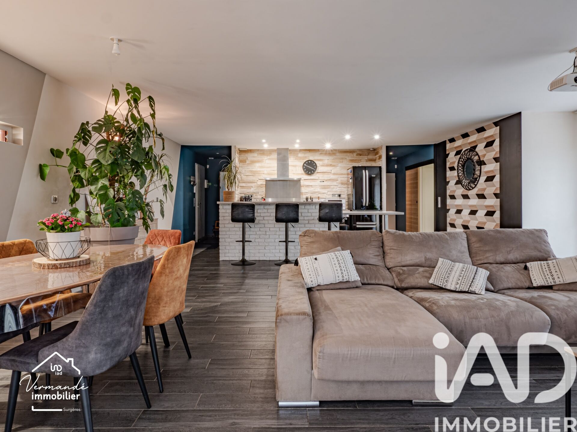 Iad France - Isabelle Vermandé vous propose : À seulement 20 minutes de La Rochelle et 10 minutes de Ferrières, cette maison de plain-pied de 2016, parfaitement entretenue, est située à Nuaillé-d’Aunis, un village dynamique offrant école primaire, pharmacie, épicerie, restaurant. Non mitoyenne et implantée sur une parcelle de plus de 600 m², cette maison de 116 m² allie confort moderne et cadre de vie paisible. Dès l’entrée, vous serez séduits par une pièce de vie généreuse de 63 m² baignée de lumière, grâce à ses baies vitrées exposées sud et ouest. L’espace se compose d’un salon-séjour chaleureux, d’une cuisine aménagée ouverte et d’un coin repas convivial. La baie vitrée à galandage prolonge l’intérieur sur une grande terrasse exposée plein sud, agrémentée d’un store banne : l’endroit idéal pour vivre dedans-dehors aux beaux jours. Les espaces techniques sont parfaitement intégrés : cellier incluant un chauffe-eau thermodynamique, buanderie complètement aménagée et garage de 17 m² viennent parfaire ce confort au quotidien. Côté nuit, un dégagement avec porte coulissante assure tranquillité et intimité. Trois chambres vous y attendent, dont une avec dressing. Une salle d’eau moderne ainsi qu’un WC séparé viennent parfaire cet espace. Le jardin sans vis-à-vis et piscinable, vous offrira calme et intimité tout au long de l’année. Autre atout rare : l’allée menant au garage, d’environ 20 mètres, permet le stationnement de plusieurs véhicules et / ou d’un camping-car. Conçue pour un confort optimal, la maison dispose d’un système de chauffage par pompe à chaleur réversible, d’un chauffe-eau thermodynamique neuf, d’une aspiration centralisée et de la fibre. Une belle opportunité pour une famille souhaitant s’installer dans un environnement serein, tout en restant proche des grands axes et de La Rochelle. Honoraires d'agence à la charge du vendeur. Information d'affichage énergétique sur ce bien : classe ENERGIE A indice 47 et classe CLIMAT A indice 1. Les informations sur les risques auxquels ce bien est exposé, y compris l'obligation légale de débroussaillement, sont disponibles sur le site Géorisques : http://www.georisques.gouv.fr. La présente annonce immobilière a été rédigée sous la responsabilité éditoriale de Mme Isabelle Vermandé mandataire indépendant en immobilier (sans détention de fonds), agent commercial de la SAS I@D France immatriculé au RSAC de LA ROCHELLE sous le numéro 839709185, titulaire de la carte de démarchage immobilier pour le compte de la société I@D France SAS.