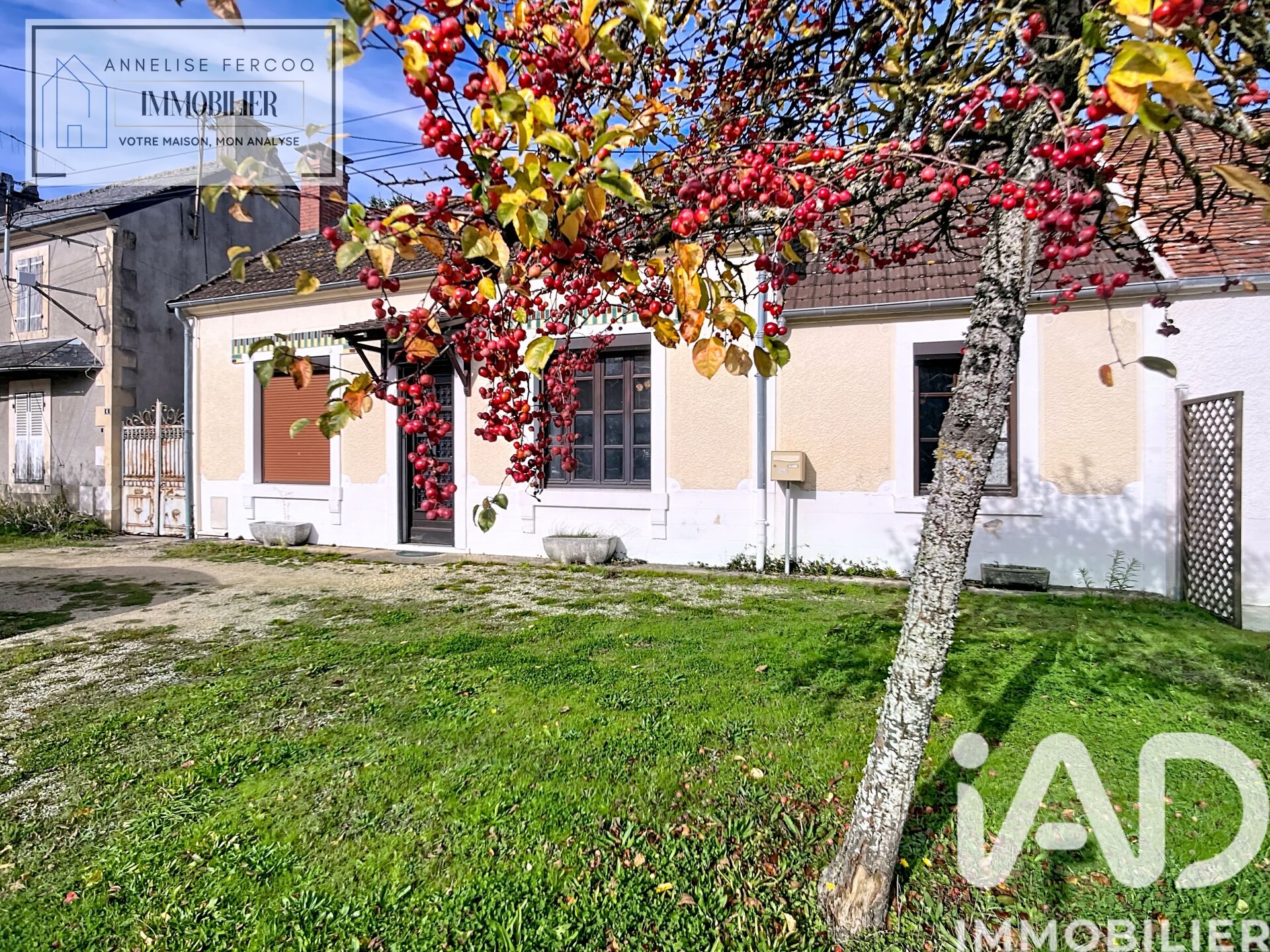 Iad France - Annelise Fercoq vous propose : Maison à rénover avec vie de plain-pied et jardin clos – Torteron (18320) Située cette commune calme de Torteron, cette maison mitoyenne d’un côté offre un fort potentiel pour ceux qui souhaitent personnaliser leur futur chez-soi. Avec sa vie de plain-pied, son terrain clos de 285 m² et sa terrasse ensoleillée, elle réunit les essentiels d’un cadre de vie agréable à la campagne, tout en restant proche des commodités. Dès l’entrée, vous découvrez un dégagement avec placards desservant : -un salon lumineux de 17 m² avec cheminée à insert et accès direct à la terrasse arrière, -une cuisine aménagée de 16 m², également ouverte sur la terrasse, -une chambre spacieuse avec rangements, -une salle d’eau avec WC, -ainsi qu’un séjour de 17 m² pouvant faire office de salle à manger ou de seconde pièce de vie. À l’étage, accessible par un escalier extérieur, deux chambres mansardées complètent l’ensemble, ainsi qu’un grenier abritant la chaudière gaz de ville. Côté extérieur, vous profitez d’un terrain entièrement clos, d’un cabanon, d’un atelier, d’une cave et d’un garage de 21 m² situé à une centaine de mètres. Cette maison demande des travaux de rénovation énergétiques et aussi de remise au gout du jour, mais offre une belle base saine et de nombreuses possibilités d’aménagement. Idéal pour un premier achat, un investissement locatif ou un projet de rénovation avec charme et authenticité. Honoraires d'agence à la charge du vendeur. Information d'affichage énergétique sur ce bien : classe ENERGIE G indice 485 et classe CLIMAT D indice 43. Les informations sur les risques auxquels ce bien est exposé, y compris l'obligation légale de débroussaillement, sont disponibles sur le site Géorisques : http://www.georisques.gouv.fr. La présente annonce immobilière a été rédigée sous la responsabilité éditoriale de Mme Annelise Fercoq mandataire indépendant en immobilier (sans détention de fonds), agent commercial de la SAS I@D France immatriculé au RSAC de EVRY sous le numéro 918850272, titulaire de la carte de démarchage immobilier pour le compte de la société I@D France SAS.