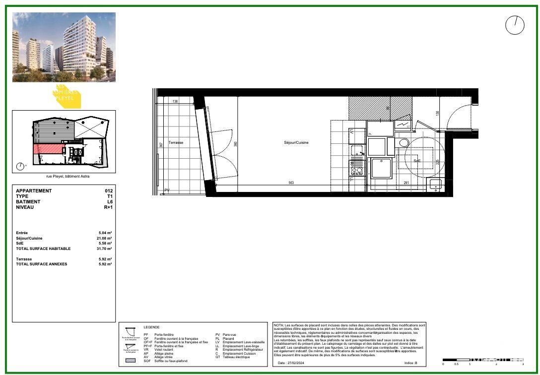 Iad France - Marc Franc (07 80 36 67 20) vous propose : La résidence Les lumières de PLEYEL 'ASTRA' à SAINT-DENIS - frais d'agence à la charge du vendeur - Métro, RER à proximité immédiate. Située aux portes de Paris, la résidence Les lumières de PLEYEL située au coeur du Grand-Paris, au carrefour de l'aéroport Charles De Gaulle, du Stade de France, de l'A86, et du périphérique, à deux pas de toutes le commodités, offre un très large choix d'appartements. - logement 1 pièce, R + 1,. exposition Ouest,. contenance totale de 32 m² environ,. terrasse de 6 environ,. frais de notaire estimés à 6000 euros en moyenne (OFFERTS jusqu'au 31 janvier 2026) Autres logements disponibles : - 1 à 4 pièces, - de 32à 86 m² environ, - balcon, - parking au sous-sol (lot secondaire), RT 2012 - Livraison prévisionnelle 1er T 2027. Contactez-moi pour en savoir plus et réserver au coeur d'un quartier au dynamisme incomparable. Honoraires d’agence à la charge du vendeur. Bien non soumis au DPE. Les informations sur les risques auxquels ce bien est exposé sont disponibles sur le site Géorisques : www.georisques.gouv.fr. La présente annonce immobilière a été rédigée sous la responsabilité éditoriale de M. Marc Franc EI (ID 83540), mandataire indépendant en immobilier (sans détention de fonds), agent commercial de la SAS I@D France immatriculé au RSAC de VANNES sous le numéro 931732952, titulaire de la carte de démarchage immobilier pour le compte de la société I@D France SAS. Retrouvez tous nos biens sur notre site internet. www.iadfrance.fr.