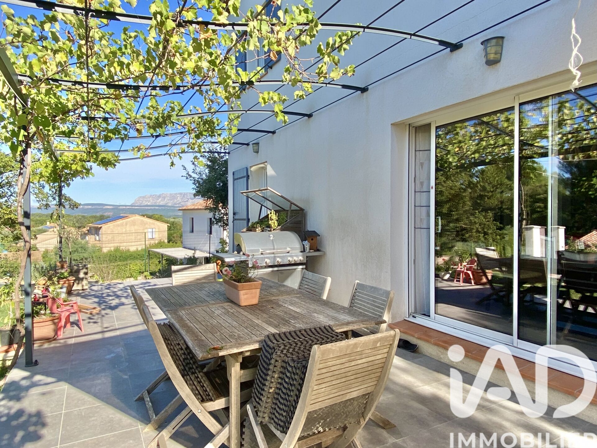Iad France - Coralie De Fommervault vous propose : Située dans un quartier recherché de Trets, à proximité de l’école Saint-Jean, maison récente (2016) de type 5 de 112 m² environ sur une parcelle de 630 m² en position dominante, offrant une belle vue sur la Sainte-Victoire. Deux places de parking privatives complètent le bien. L’entrée dessert une pièce de vie lumineuse de 40 m², avec cuisine ouverte équipée et îlot central, s’ouvrant sur une terrasse exposée Sud / Sud-Ouest, surplombant le jardin. Un demi-niveau accueille une chambre parentale avec salle d’eau privative. Le rez-de-chaussée comprend également un grand placard d’entrée, un WC indépendant avec lave-mains, et une buanderie. À l'étage, un dégagement dessert trois chambres avec penderie intégrée et vue dégagée, une spacieuse salle de bains baignée de lumière, et un WC indépendant. Les extérieurs, entièrement clos et soigneusement aménagés, proposent une terrasse de 32 m² sous pergola offrant une vue sur la Sainte-Victoire, un cabanon en bois, un potager, de beaux espaces verts agrémentés d’arbres fruitiers, ainsi qu’un accès piéton menant au parking en contrebas. Honoraires d'agence à la charge du vendeur. Information d'affichage énergétique sur ce bien : classe ENERGIE B indice 105 et classe CLIMAT A indice 3. Les informations sur les risques auxquels ce bien est exposé, y compris l'obligation légale de débroussaillement, sont disponibles sur le site Géorisques : http://www.georisques.gouv.fr. La présente annonce immobilière a été rédigée sous la responsabilité éditoriale de Mme Coralie De Fommervault mandataire indépendant en immobilier (sans détention de fonds), agent commercial de la SAS I@D France immatriculé au RSAC de AIX EN PROVENCE sous le numéro 849807482, titulaire de la carte de démarchage immobilier pour le compte de la société I@D France SAS.