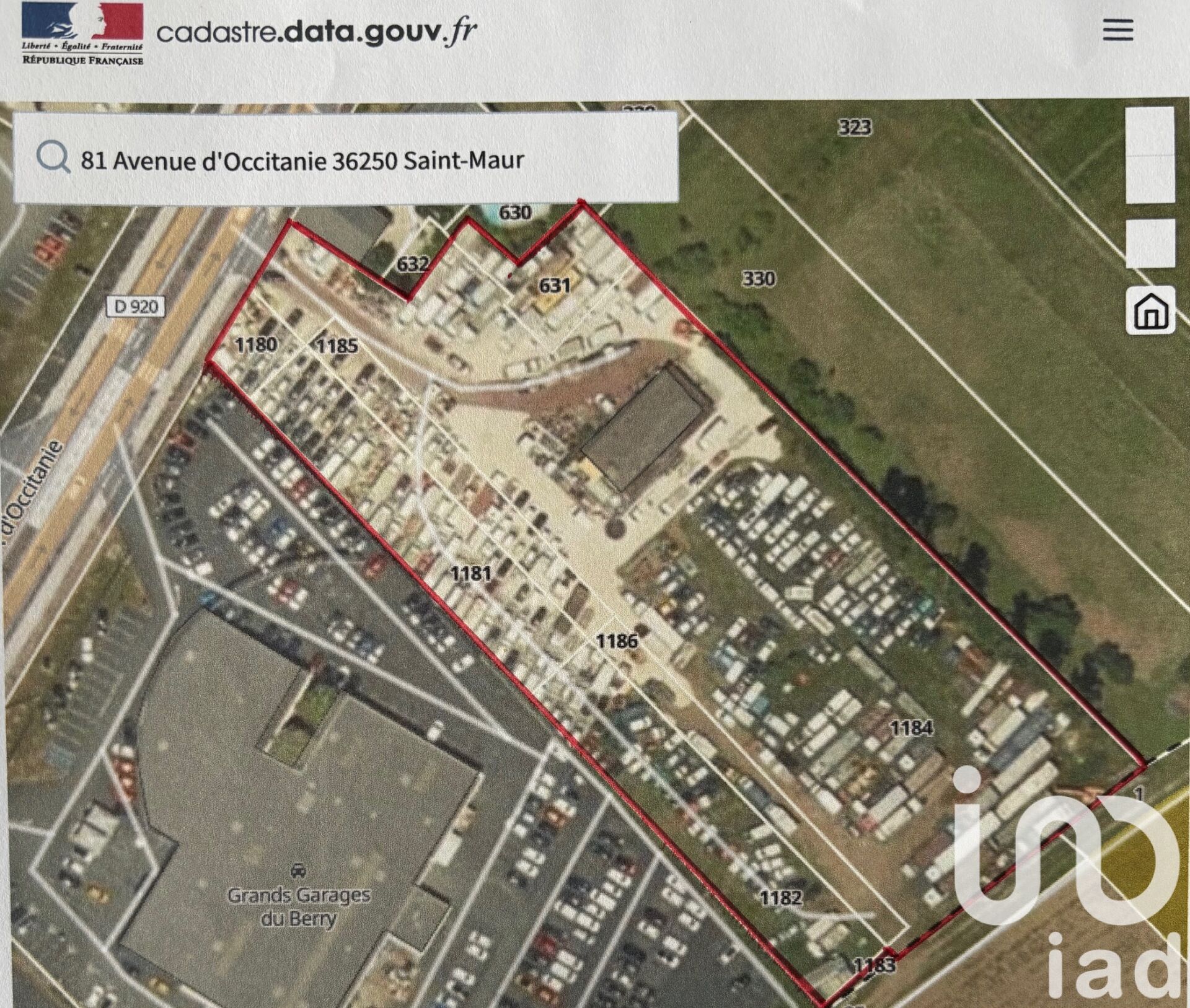 Iad France - Benoit Rullaud vous propose : Terrain commercial de 10 766 m² en première ligne – Zone Cap Sud, Saint-Maur (36250) Adresse : 81,83, avenue d'Occitanie, 36250 Saint-Maur Emplacement stratégique : En plein cOEur de la zone commerciale dynamique Cap Sud, sur la première ligne commerciale, bénéficiant d'une forte attractivité et d'une excellente visibilité. * Superficie totale : 10 766 m² * Zone Uy4 : Terrain à vocation d'espace commercial de périphérie * Façade : Environ 70 mètres au plus large, offrant un potentiel d'aménagement optimal. * Réseaux existant pour le bâtiment, facilement accessibles Ce terrain représente une opportunité rare pour tout projet commercial ou d'implantation d'enseigne en périphérie, dans une zone à fort passage et en plein développement. Permis de démolir accepté pour la maison, la démolition pourra être réalisé par le vendeur). Contactez-moi dès maintenant pour plus d'informations ou organiser une visite. Honoraires d'agence à la charge du vendeur. Bien non soumis au DPE. Les informations sur les risques auxquels ce bien est exposé, y compris l'obligation légale de débroussaillement, sont disponibles sur le site Géorisques : http://www.georisques.gouv.fr. La présente annonce immobilière a été rédigée sous la responsabilité éditoriale de M Benoit Rullaud mandataire indépendant en immobilier (sans détention de fonds), agent commercial de la SAS I@D France immatriculé au RSAC de Chateauroux sous le numéro 535024962, titulaire de la carte de démarchage immobilier pour le compte de la société I@D France SAS.
