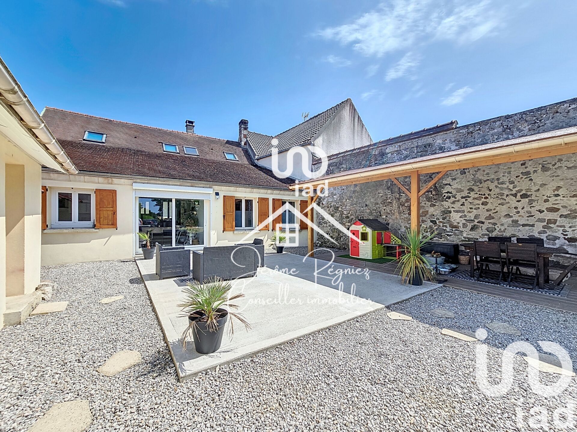 Iad France - Jérôme REGNIEZ vous propose : Nouvelle opportunité ! Visite virtuelle disponible * EN EXCLUSIVITÉ * MAISON DE CARACTERE Mélange du moderne et de l'ancien, au charme de la poutre et de la pierre. VIVABLE DE PLAIN-PIED. Volume, confort, modernité, et tranquillité, ne sont qu'une infime partie de ce que vous découvrirez dans cette surprenante maison provocatrice de coup de coeur ! Chauffage pompe à chaleur AIR / EAU, poêle à bois, chauffage par le sol au rez-de-chaussée, pièce de vie d'environ 40 m², cuisine moderne de plus de 23 m² avec son accès à la cave voutée, jardin sans vis-à-vis, terrasse couverte et terrasse au soleil,. TERRAIN DE PLUS DE 1000 m² avec dépendances, portail électrique. École primaire sur place. De nombreuses prestations y sont à découvrir ! Honoraires d'agence à la charge du vendeur. Information d'affichage énergétique sur ce bien : classe ENERGIE D indice 219 et classe CLIMAT B indice 7. Les informations sur les risques auxquels ce bien est exposé, y compris l'obligation légale de débroussaillement, sont disponibles sur le site Géorisques : http://www.georisques.gouv.fr. La présente annonce immobilière a été rédigée sous la responsabilité éditoriale de M Jérôme REGNIEZ mandataire indépendant en immobilier (sans détention de fonds), agent commercial de la SAS I@D France immatriculé au RSAC de COMPIEGNE sous le numéro 891494825, titulaire de la carte de démarchage immobilier pour le compte de la société I@D France SAS.