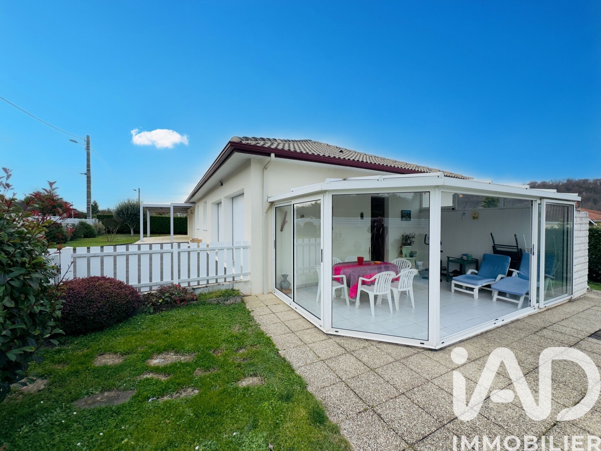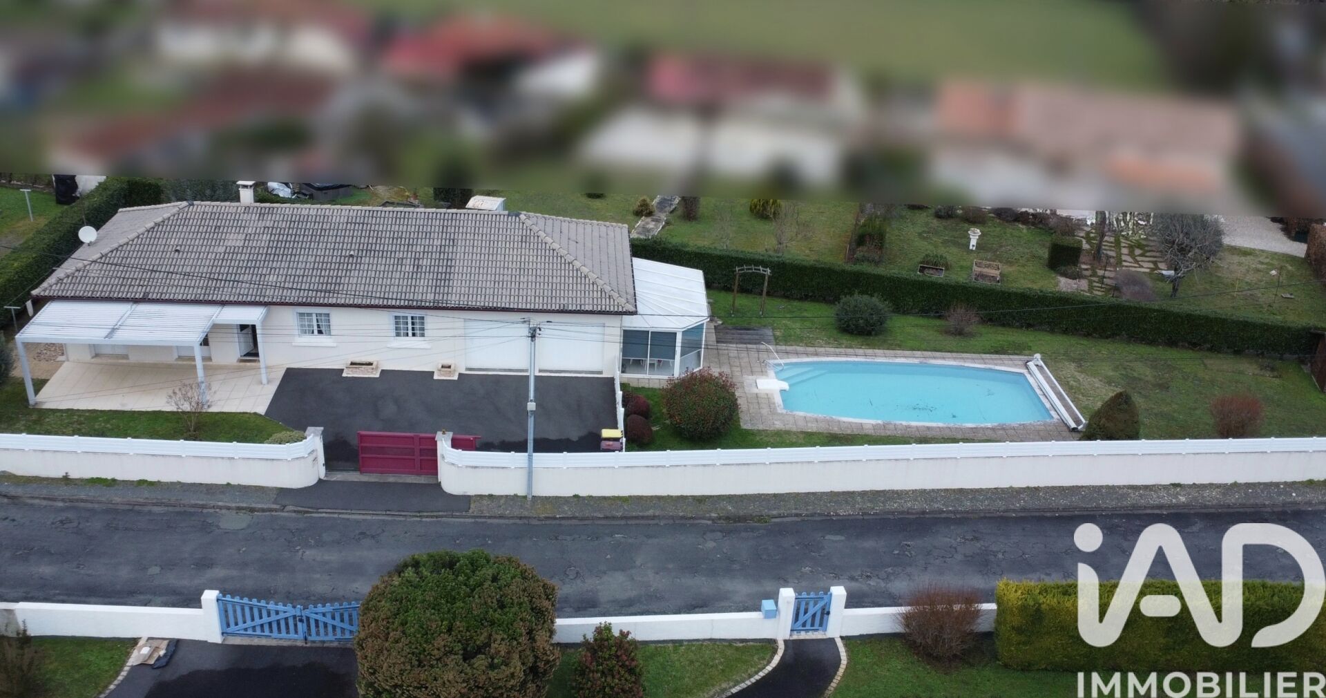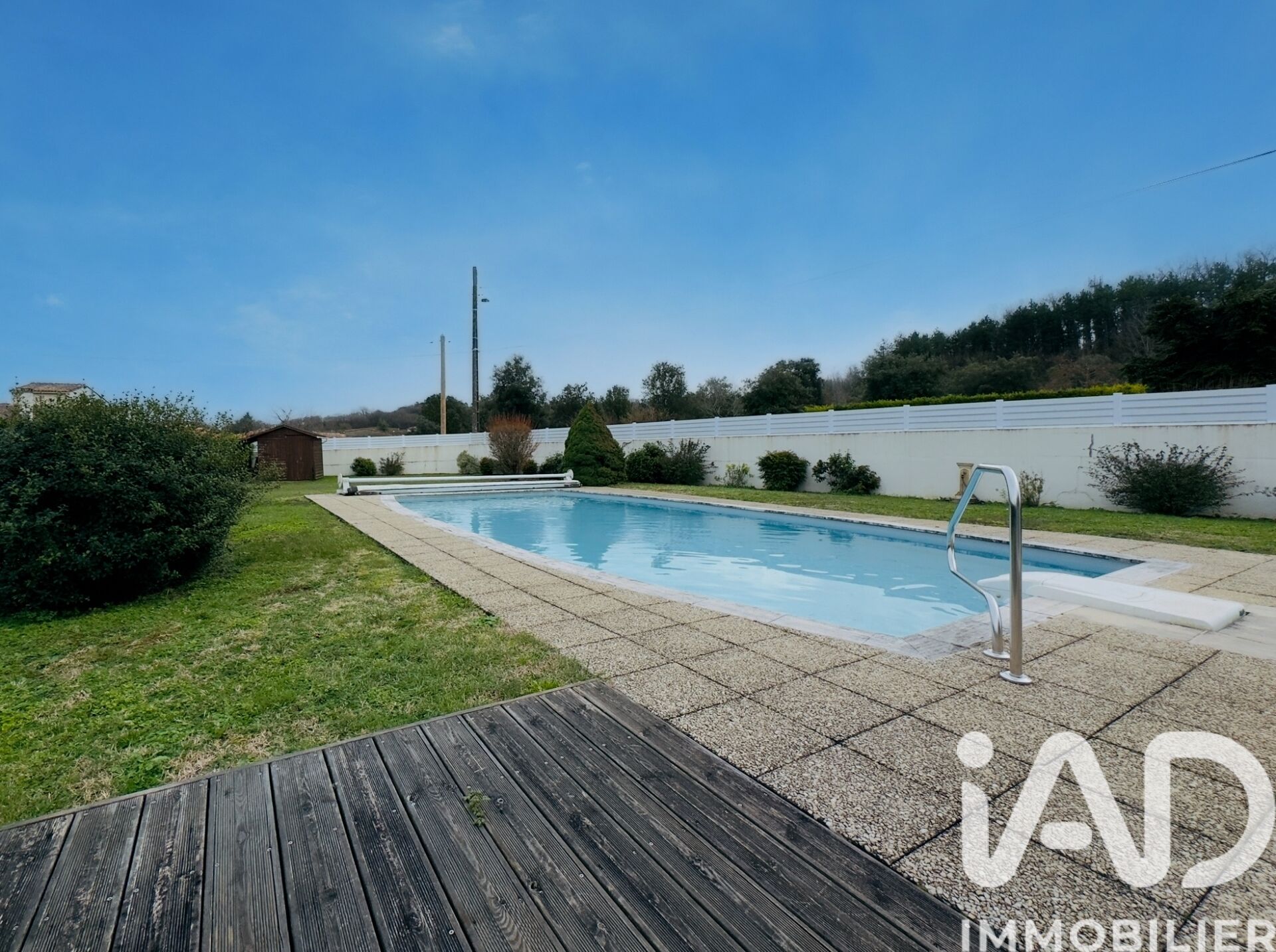 Iad France - Sebastien Rey vous propose : Maison de plain-pied de 91 m² avec piscine sur terrain clos de 1 130 m² – secteur calme Située au fond d’une impasse, dans un environnement paisible et proche des commodités, cette maison de plain-pied de 1975 offre un cadre de vie agréable et fonctionnel. Toujours bien entretenue au fil des années, elle ne nécessite aucun travaux particuliers. Elle se compose d’une entrée, d’une cuisine meublée et équipée, d’un salon-séjour lumineux. La partie nuit comprend trois chambres dont deux avec rangements, une salle d’eau récente, une buanderie, et Wc séparés, le tout desservit par un couloir avec grand placard. À l’extérieur, vous profiterez d’un terrain plat et entièrement clôturé de 1 130 m² avec piscine (10 x 5 m), véranda attenante et pergola bioclimatique électrique. Un double garage de 43 m² complète l’ensemble. Le bien est équipé d'un Chauffage électrique et une cheminée avec insert, du double vitrage, de volets électriques, d'un portail et portes de garages électriques, tout à l’égout et Fibre. Un bien en bon état général, idéal pour ceux qui recherchent le calme et la tranquillité. Honoraires d'agence à la charge du vendeur. Information d'affichage énergétique sur ce bien : classe ENERGIE D indice 234 et classe CLIMAT B indice 8. Les informations sur les risques auxquels ce bien est exposé, y compris l'obligation légale de débroussaillement, sont disponibles sur le site Géorisques : http://www.georisques.gouv.fr. La présente annonce immobilière a été rédigée sous la responsabilité éditoriale de M Sebastien Rey mandataire indépendant en immobilier (sans détention de fonds), agent commercial de la SAS I@D France immatriculé au RSAC de Angoulême sous le numéro 911583482, titulaire de la carte de démarchage immobilier pour le compte de la société I@D France SAS.