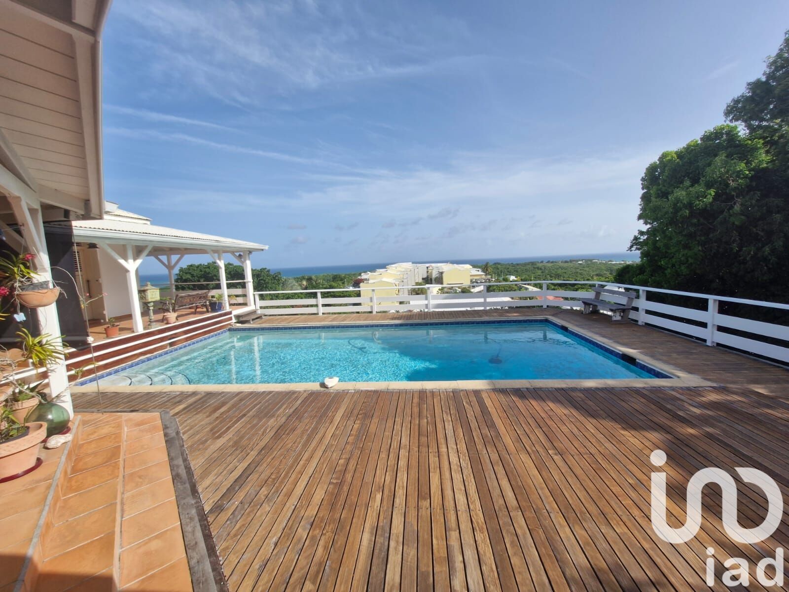 Iad France - Severine Cau vous propose : En exclusivité, coup de coeur pour cette maison F5 d'environ 156 m² pour une surface totale d'environ 279 m² sur un terrain d'environ 1001 m² très bien située, au calme, sans vis-à-vis, en haut d'un morne aux Salines Gosier tout en étant à côté des grands axes routiers. Maison F5 en dur de type créole avec sa très belle vue mer, construite en deux parties reliées par un grand patio : d'un côté la partie vie commune : cuisine américaine ouverte sur le séjour, plus une buanderie et un wc invités avec lavabo. De l'autre côté, la partie nuit avec une chambre d'amis indépendante ouverte sur la terrasse avec salle d'eau et wc, ensuite une suite parentale avec deux portes fenêtres ouvrant sur la terrasse, sa salle de bain avec wc, douche et baignoire, un dressing. Ensuite deux chambres qui se partagent une salle d'eau avec wc. Dans le grand patio, vous avez un escalier qui vous mène aux combles aménagés en espace détente. Les terrasses sont couvertes et isolées, carrelées d'une surface d'environ 130 m². La grande piscine au sel avec son deck d'environ 70 m² aux belles prestations de matériaux (bois IP, poutrelles et poutres en acier galvanisé. ). Le tout offre beaucoup de charme, une âme. Le jardin est arboré et fleuri. Au niveau inférieur, le plus une citerne d'eau intégrée en béton, un garage pouvant contenir deux voitures, un grand sous-sol. Le terre-plein lui, pouvant aussi accueillir deux voitures. Les plus de la maison : Construite en béton avec une charpente en bois rouge (Courbaril, Jatoba) et menuiseries en Red Cedar. Elle offre encore de très belles possibilités d'évolution comme les espaces sous combles et le sous-sol. Idem pour la parcelle de terrain arborée juste à côté encore non exploitée. Vous l'aurez compris c'est une maison atypique et rare, coup de coeur assuré ! Contactez-moi dès maintenant pour une visite pleine de charme. Honoraires d'agence à la charge du vendeur. Bien non soumis au DPE. Les informations sur les risques auxquels ce bien est exposé, y compris l'obligation légale de débroussaillement, sont disponibles sur le site Géorisques : http://www.georisques.gouv.fr. La présente annonce immobilière a été rédigée sous la responsabilité éditoriale de Mme Severine Cau mandataire indépendant en immobilier (sans détention de fonds), agent commercial de la SAS I@D France immatriculé au RSAC de Pointe à Pitre sous le numéro 523248003, titulaire de la carte de démarchage immobilier pour le compte de la société I@D France SAS.