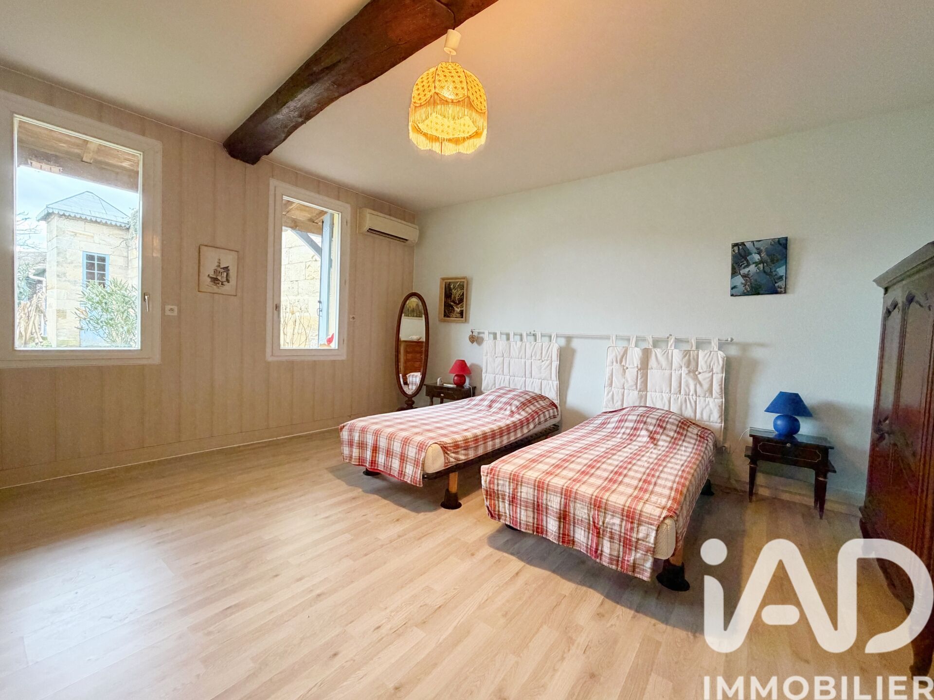 Iad France - Sandrine Magnier vous propose : Girondine de charme, 5 chambres, bureau. Jardin, piscine. Tout à pied ! Au cOEur de Saint-Médard-de-Guizières, à deux pas des commerces et de la gare, découvrez cette authentique girondine alliant cachet de l’ancien et confort moderne (clim réversible dans toutes les pièces). Au RDC : belle entrée, double séjour lumineux, cuisine, chambre, salle d’eau + une pièce annexe idéale pour un studio indépendant. À l’étage : 4 vastes chambres (25 m² chacune), salle d’eau, WC. Le tout sur un jardin arboré avec piscine, sans vis-à-vis, et cerise sur le gâteau : 2 superbes pigeonniers ! Idéal famille ou projet locatif. Coup de cOEur assuré ! Contactez-moi pour une visite ! Proposition d’aménagement non contractuel en dernières photos Honoraires d'agence à la charge du vendeur. Information d'affichage énergétique sur ce bien : classe ENERGIE B indice 87 et classe CLIMAT A indice 3. Les informations sur les risques auxquels ce bien est exposé, y compris l'obligation légale de débroussaillement, sont disponibles sur le site Géorisques : http://www.georisques.gouv.fr. La présente annonce immobilière a été rédigée sous la responsabilité éditoriale de Mme Sandrine Magnier mandataire indépendant en immobilier (sans détention de fonds), agent commercial de la SAS I@D France immatriculé au RSAC de LIBOURNE sous le numéro 828398198, titulaire de la carte de démarchage immobilier pour le compte de la société I@D France SAS.